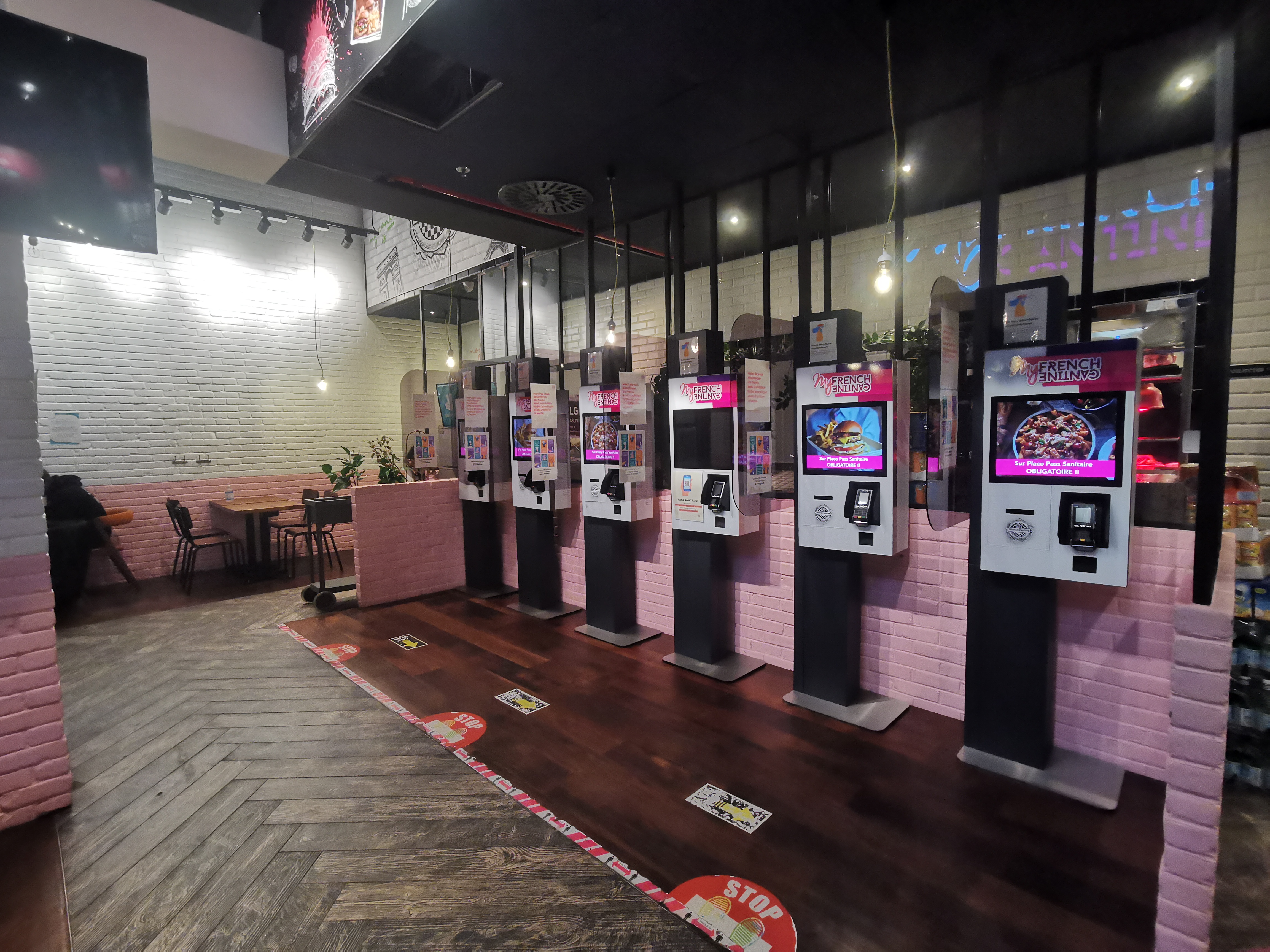 J'y suis allé 3-4 fois déjà et on commande toujours sur borne, on règle ensuite à la caisse et on nous donne un petit bipeur qui sonne lorsque la commande est prête à être récupérée. J'ai toujours eu de la place pour 2 personnes lorsque je venais dîner. La nourriture est bonne en général mais les frites sont toujours un peu trop huilés, je trouve ça dommage car ça retire un peu l'appétit quand on les entame.