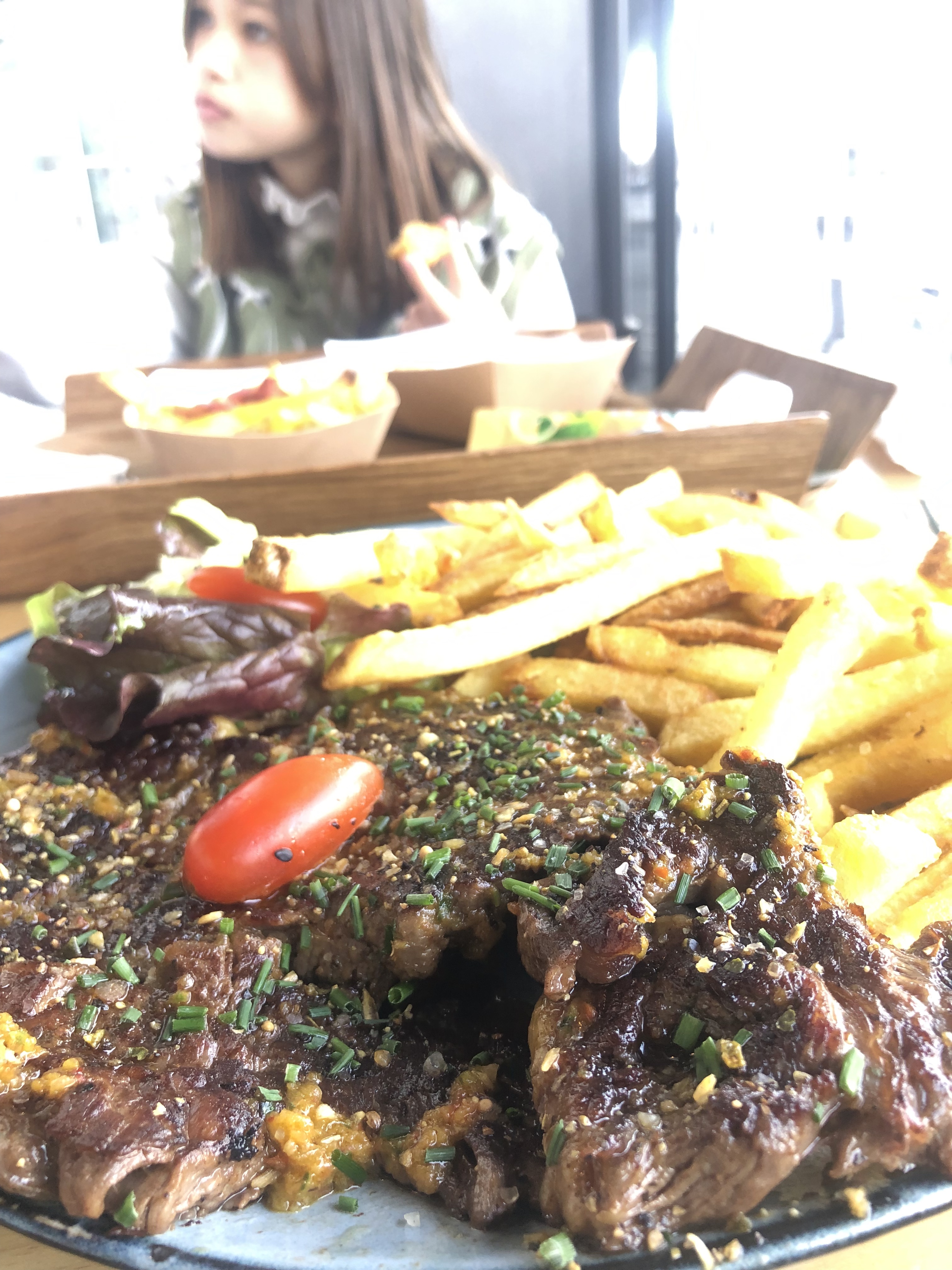 Le concept est sympa, Les frites sont alléchantes mais plutôt grasses. Le steak c'est cuit ou archi cuit du coup sec et limite mangeable. Les quantités sont raisonnable. L'attente est assez longue, éviter le 12h30 13h30, malheureusement on a tous les mêmes plages horaires, du coup le dessert il vaut mieux le commander en milieu de repas sinon vous attendez une nouvelle fois.