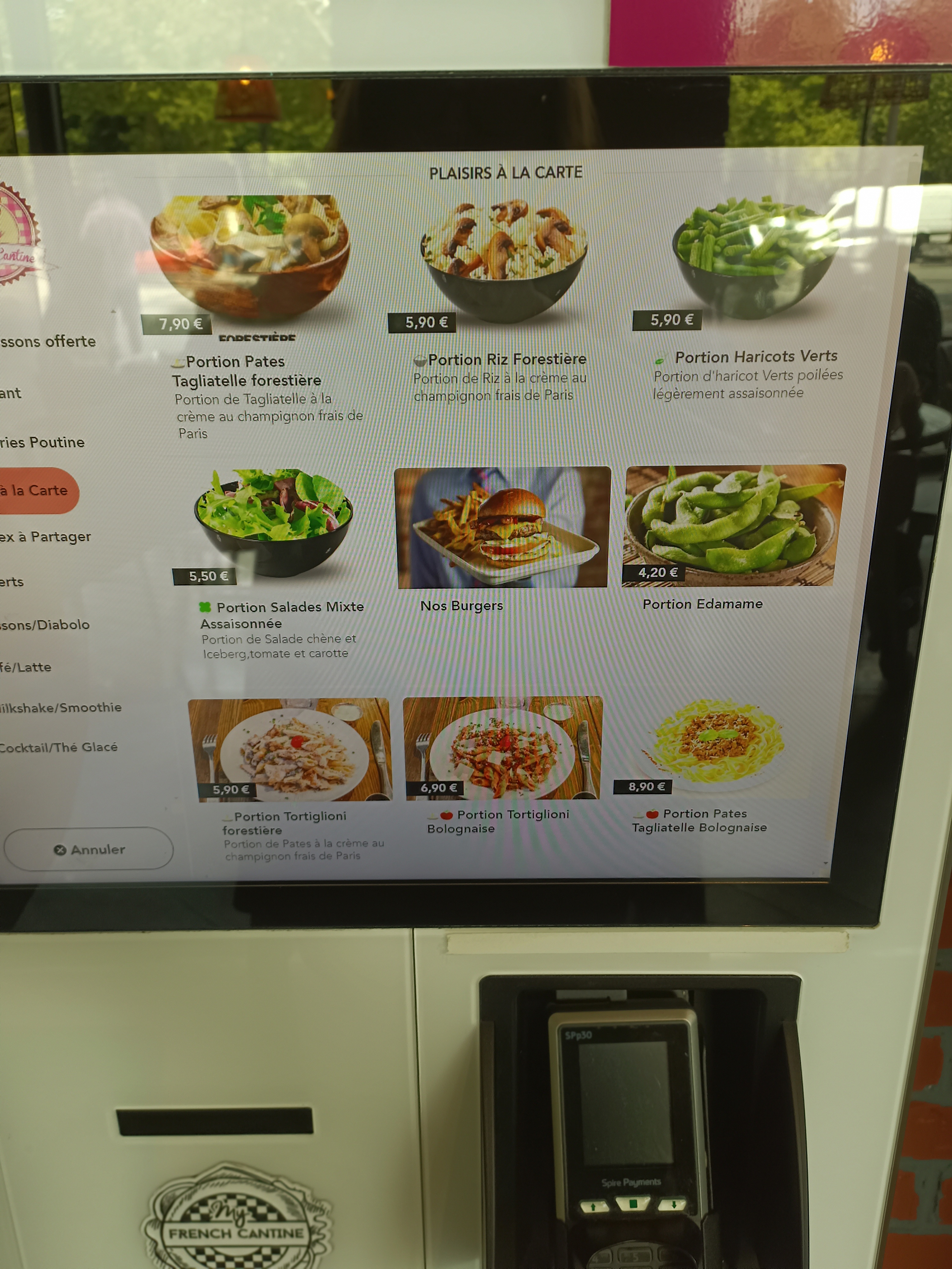 Sur la tablette de commande ,il n'y avait pas tout les plats proposés en papier à l'extérieur et c'est dommage. Pas de possibilité de milkshake, smoothie.... ce jour là en plus de la réduction énorme de la carte . Jolie cadre. Je peux le recommander mais ailleurs