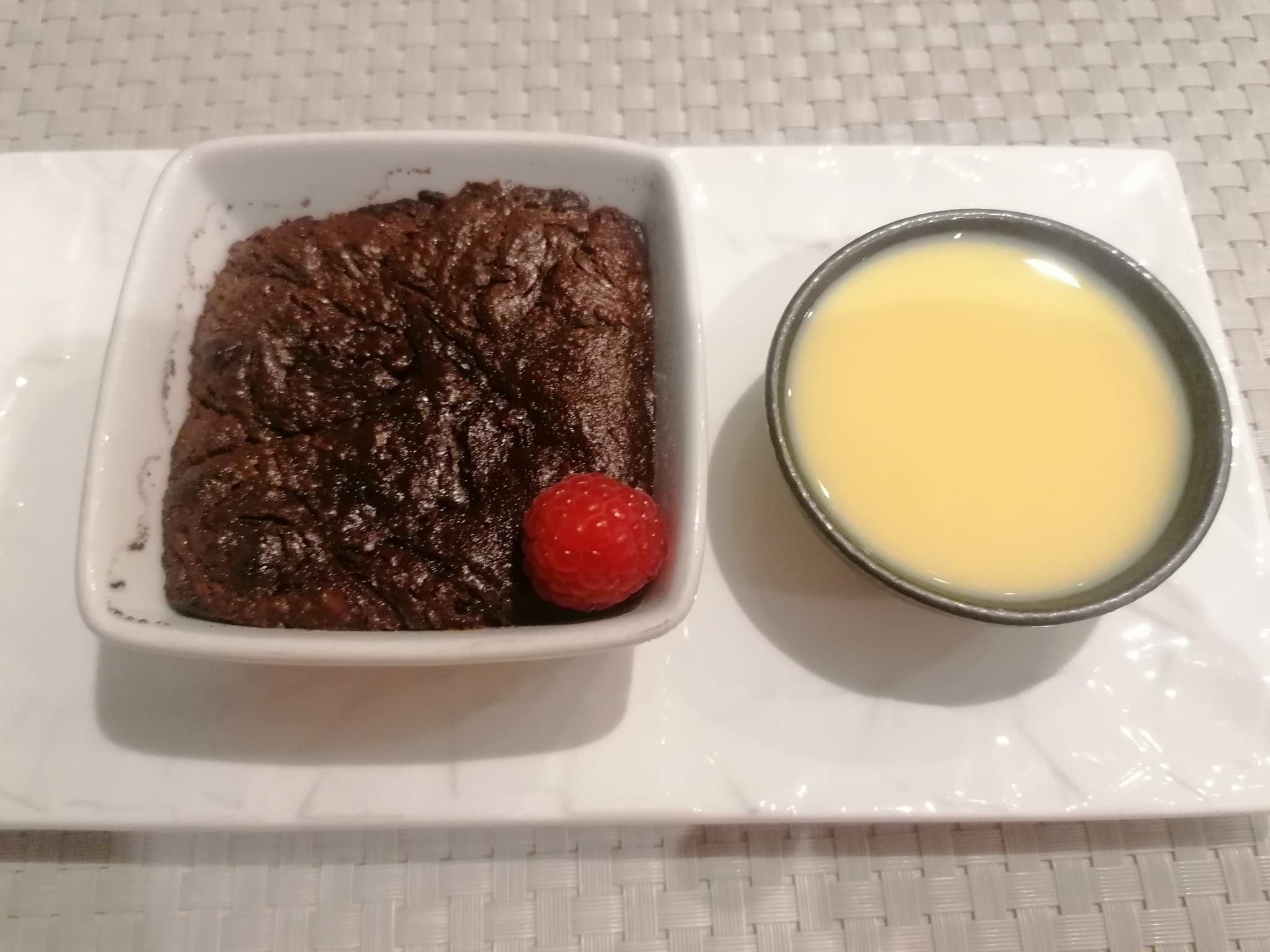 Tres bon tres frais. Un bémol : le fondant mal démoulé peu présentable. Pou la peine un café offert aurait été bienvenu