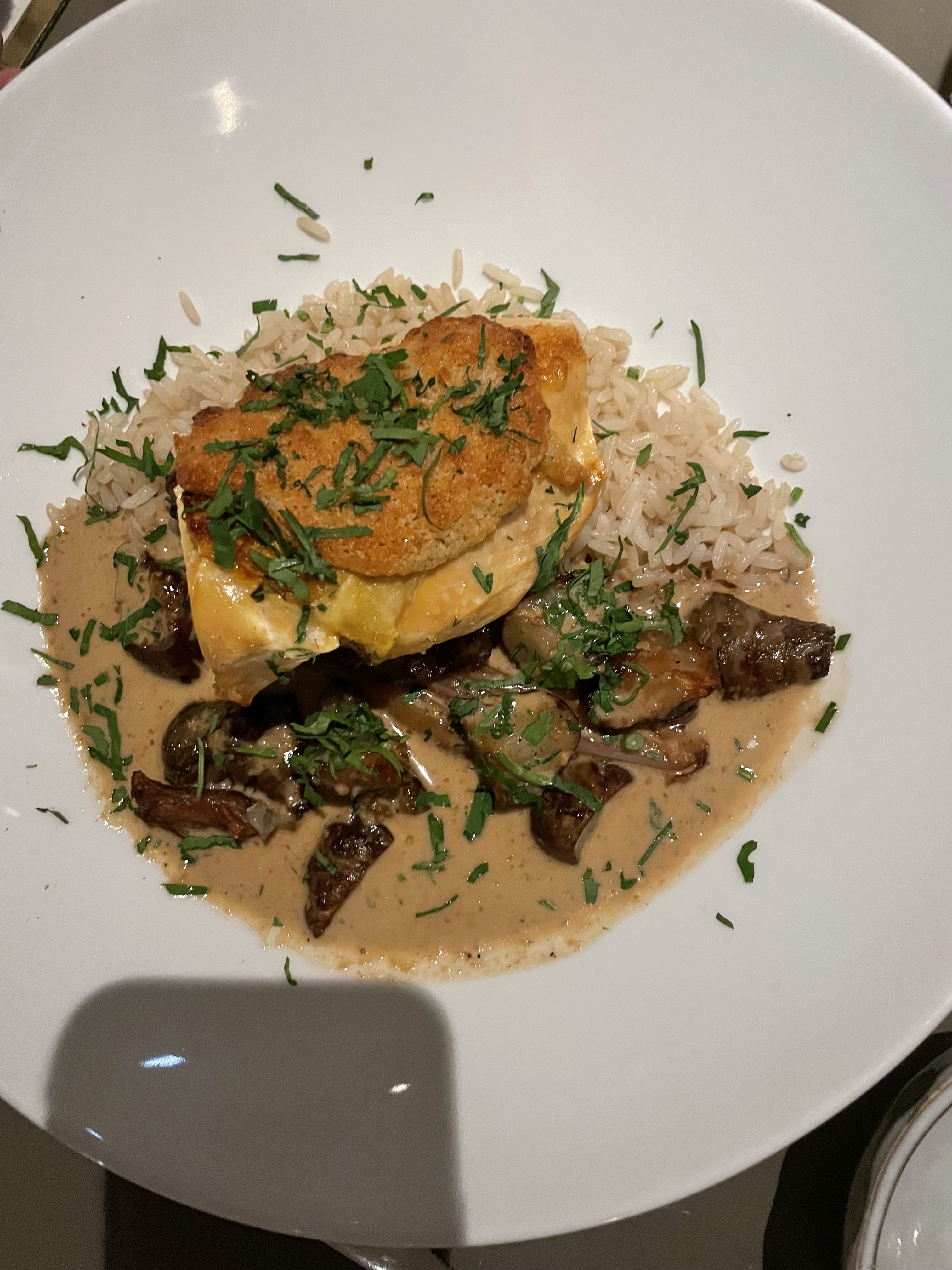 C’était tout simplement exceptionnel ! Les plats étaient DÉLICIEUX, le cadre est magnifique, je recommande à 100%. Nous avons pris en entrée du poulpe, des arrancinis et des minis tacos au porc. Puis nous avons pris de la blanquette de veau et de l’échine de porc, crème girolles et linguines. C’était excellent !!! Allez y les yeux fermés, vos papilles vous remercieront !