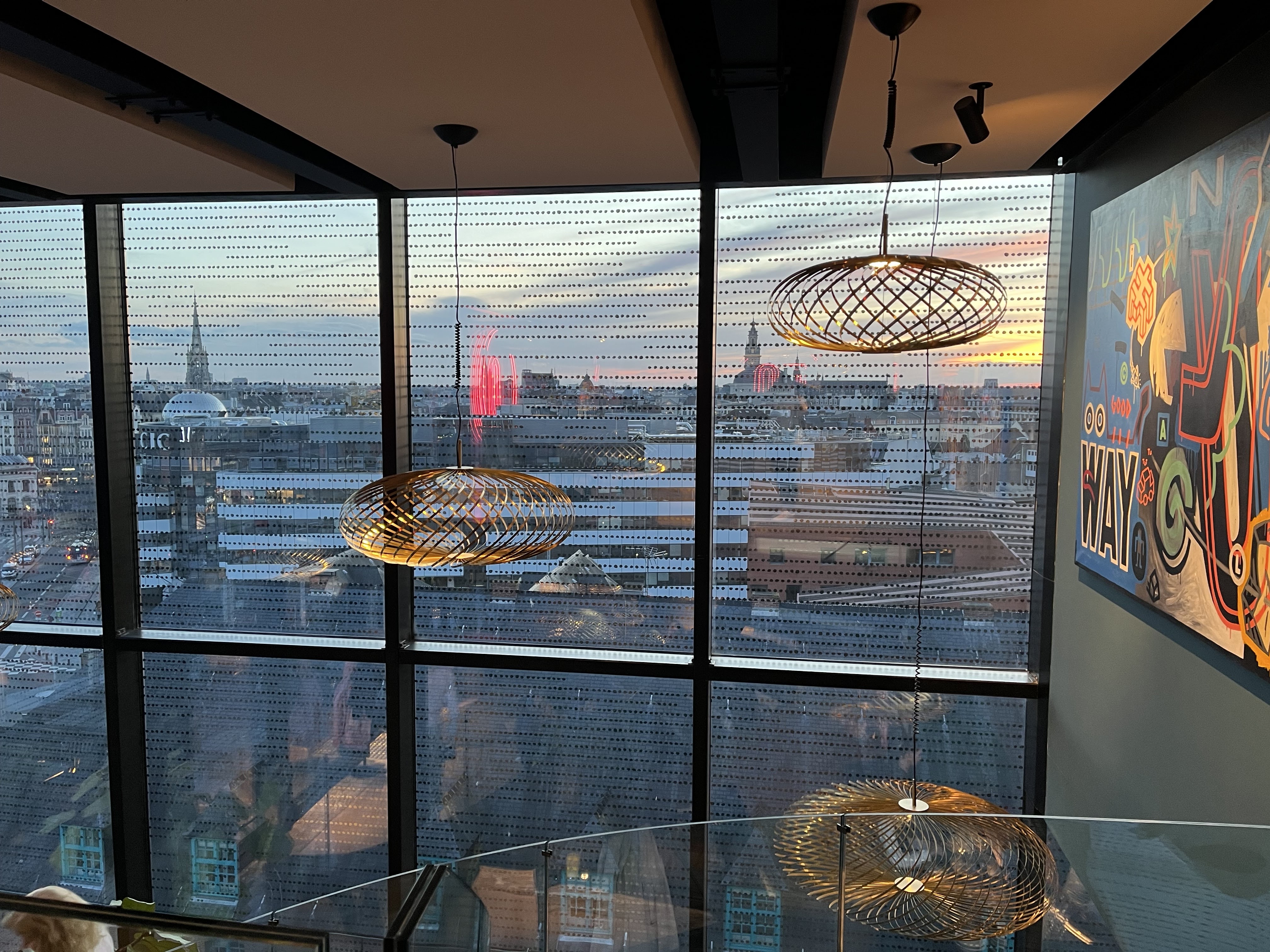 Agréablement surprise par ce restaurant panoramique, très jolie décoration qui rappelle celle du mama Shelter. Surprise aussi par le nombre de personnel, de l'accueil au placement jusqu'au service vous êtes très bien accueilli. La carte du soir est au niveau tarif un peu élevée mais le plat choisi était très bon. Le restaurant commence à être bruyant lorsqu'il y a du monde. Très bon moment. A refaire
