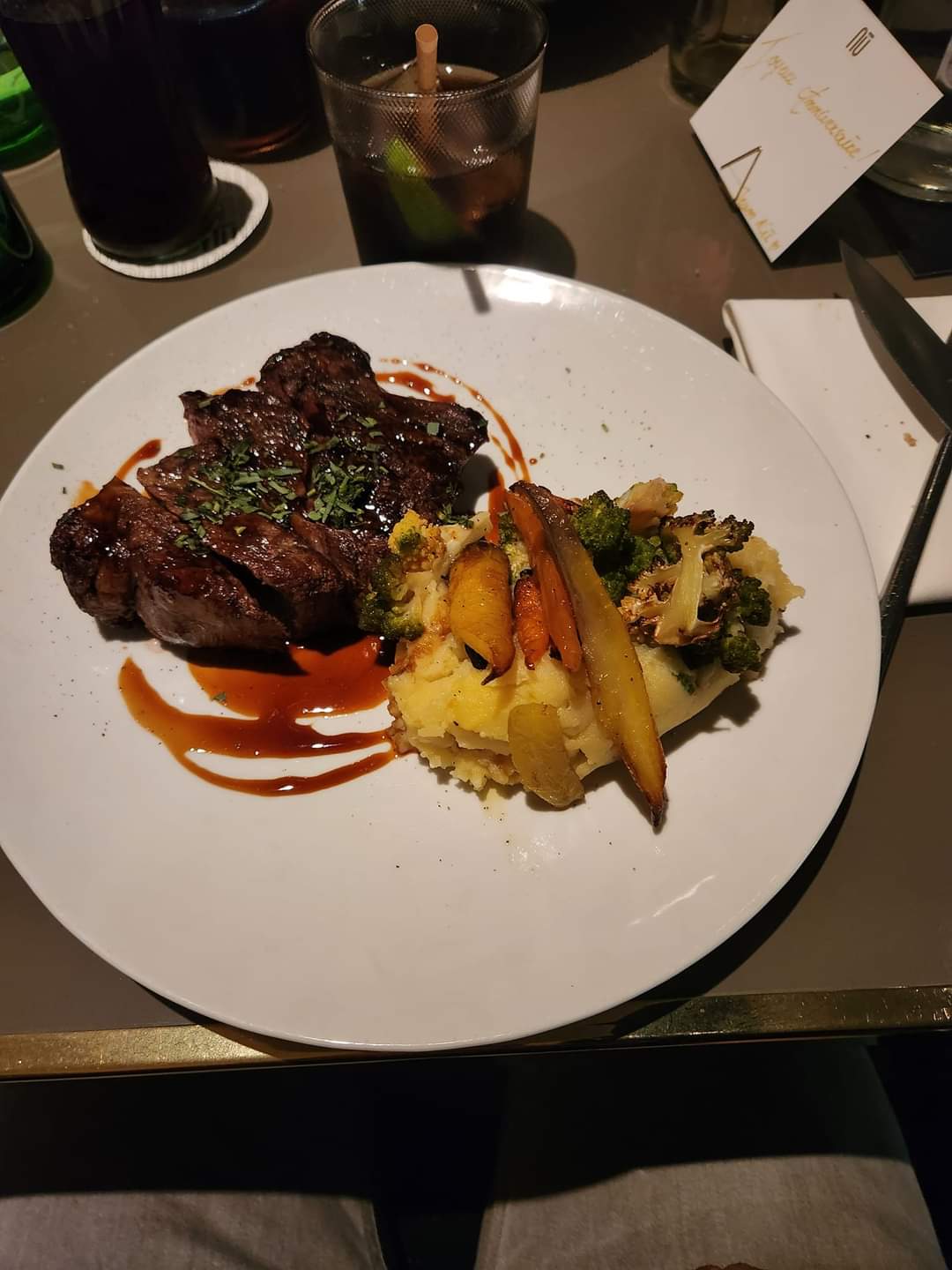 Les ingrédients étaient d'une qualité excellente, la viande de steak savoureuse et tendre, et le vin était également délicieux. Cependant, le dessert ( Pavlova Mangue Passion ) était en deçà de mes attentes. En revanche, les huîtres et leur sauce étaient délicieuses, tandis que les croquettes ne correspondaient pas à mes préférences gustatives. L'ambiance du restaurant était agréable, mais je m'attendais à quelque chose d'encore mieux, surtout compte tenu du prix. Le personnel était professionnel mais pas particulièrement chaleureux. Dans l'ensemble, c'était une bonne expérience, mais elle n'a pas tout à fait répondu à mes attentes.