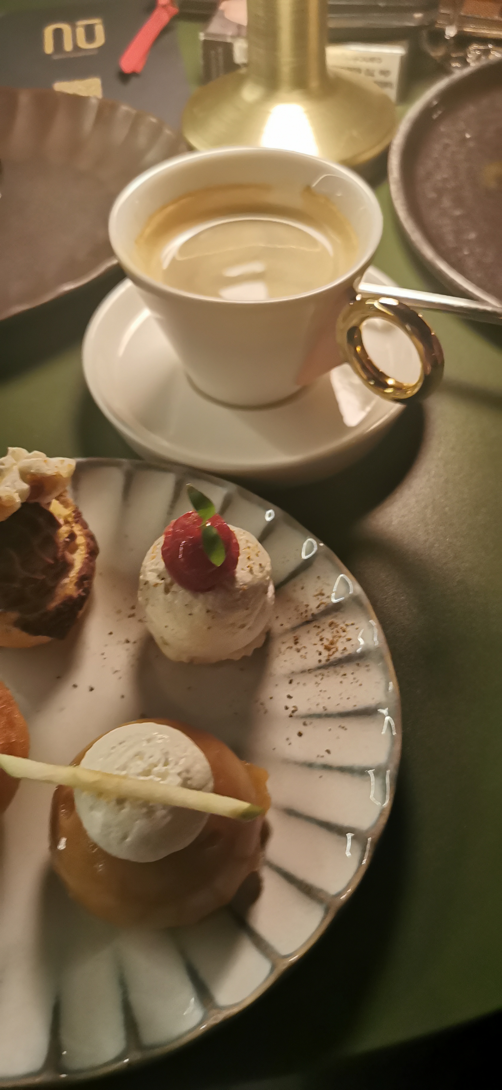 Très belle expérience culinaire, visuelle et émotionnelle. Je vous laisse le plaisir de venir découvrir cette très bonne adresse. Dès l’entrée vous êtes plongé au sein d’une soirée de douceur. Le charme des lieux, accompagne l’accueil chaleureux. Le service du Nū est au petit soin et c’est un euphémisme de dire à quel point c’est agréable. Bref, venant en au plat de résistance ! La carte ouvre les papilles et le plus difficile c’est de choisir ! On envie de déguster chaque plat, qui juste à la lecture vous invite à découverte. Pour ne pas vous priver le plaisir visuel des plats, confectionnés par un chef talentueux, je ne partage que les desserts qui viennent ponctués délicatement ce repas parfait. Bon appétit
