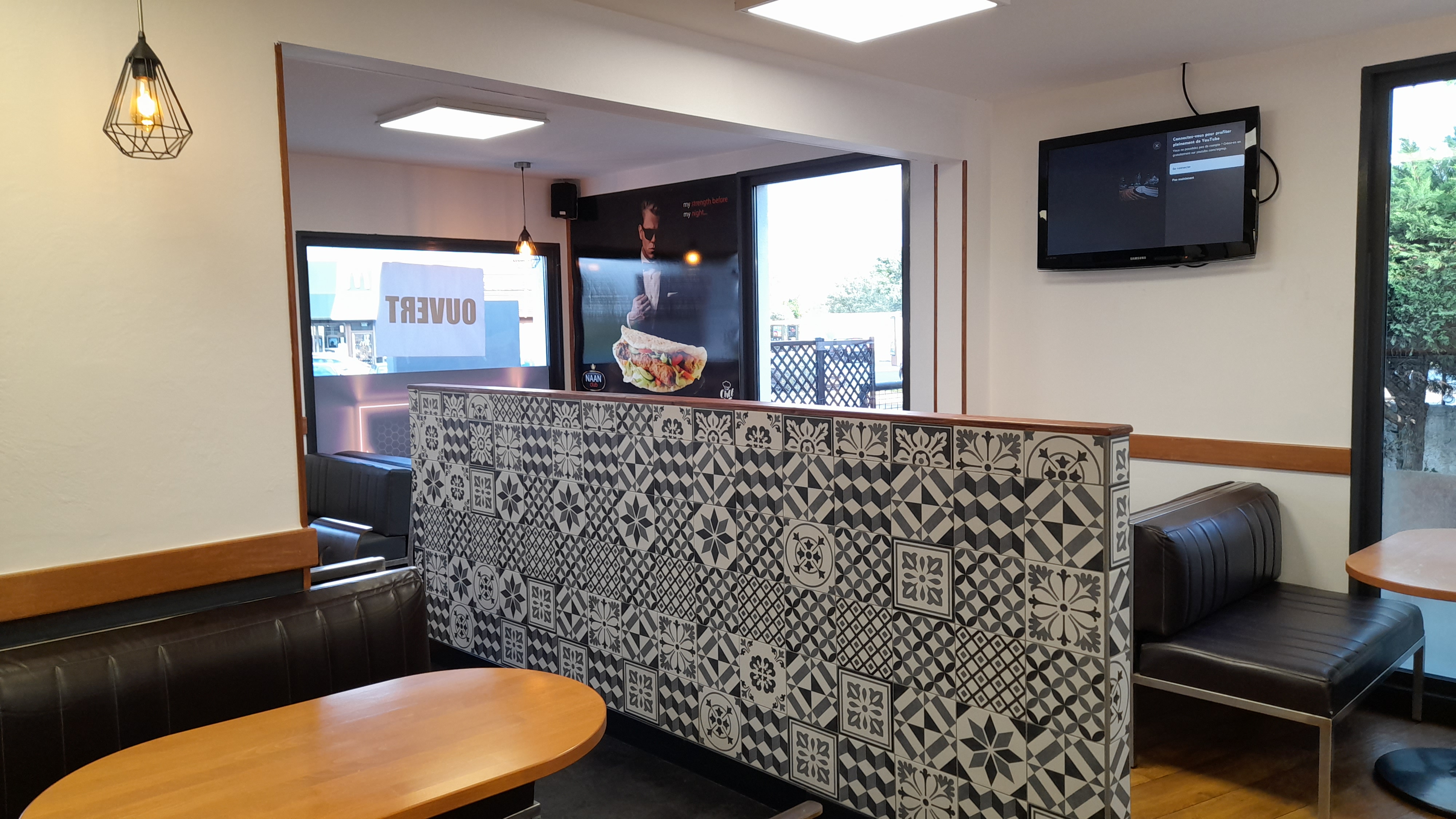 restaurant prope ainsi que la terrasse. accessible handicapé. Accueil agréable. La décoration est pas là ça fait vraiment deco chaîne. La nourriture est correcte frites maison très bonne rien à dire ,kebab très bon mais que de la viandes, naan pas cuit le tour intérieur rien à dire. question tarifs la ça pique deux menu 19€ c'est pas donné avec les quelques erreurs sur les deux menus