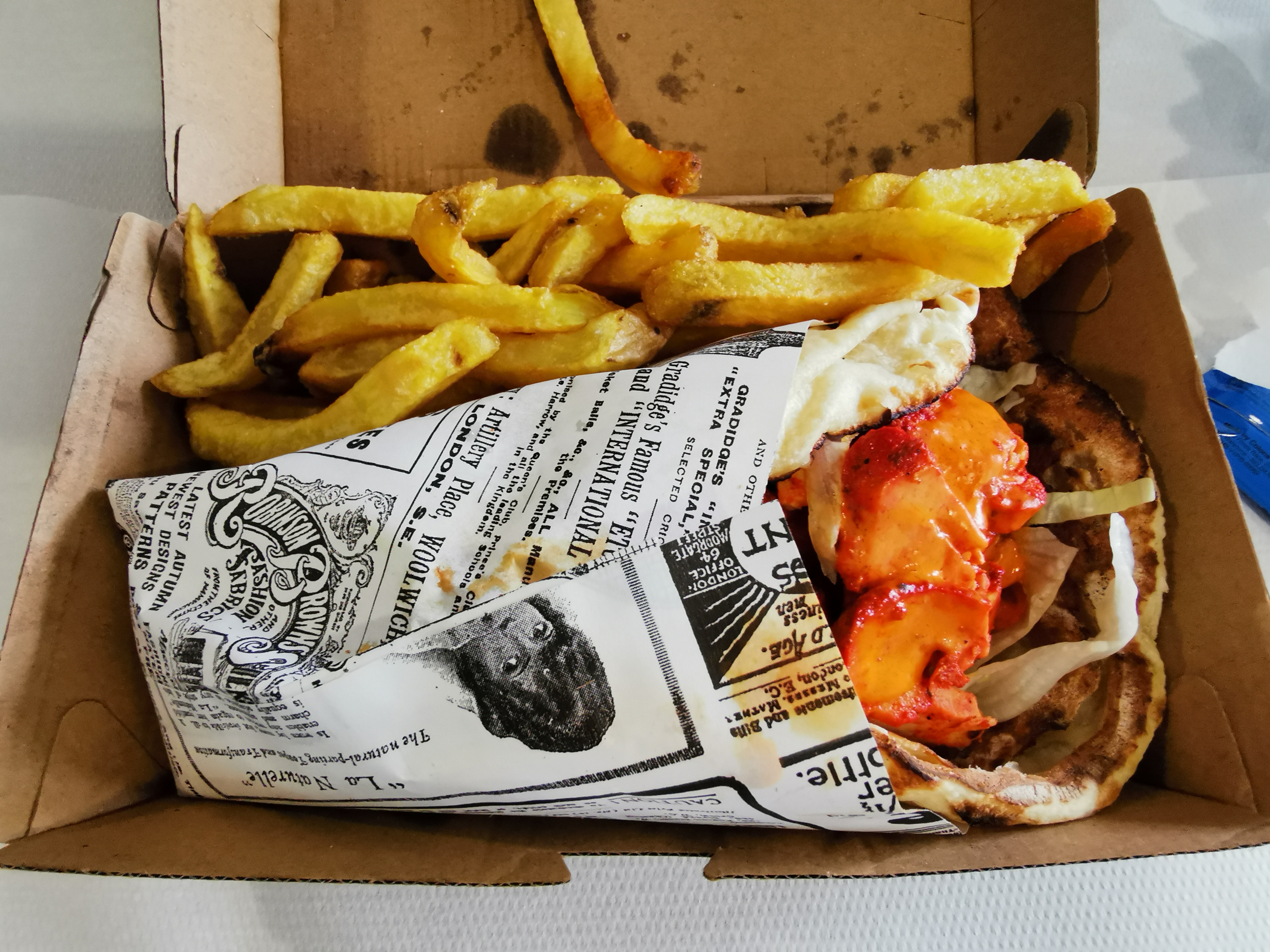Très bon rapport qualité prix , goûteux et rempli bien l’estomac il fait bien son rôle, petit plus pour les frittes elles ressemblent vraiment pas à ceux qu’on mange habituellement au kebab je ne sais pas si elle sont maison ou juste bien assaisonner mais ça fait la diff je recommande 👍