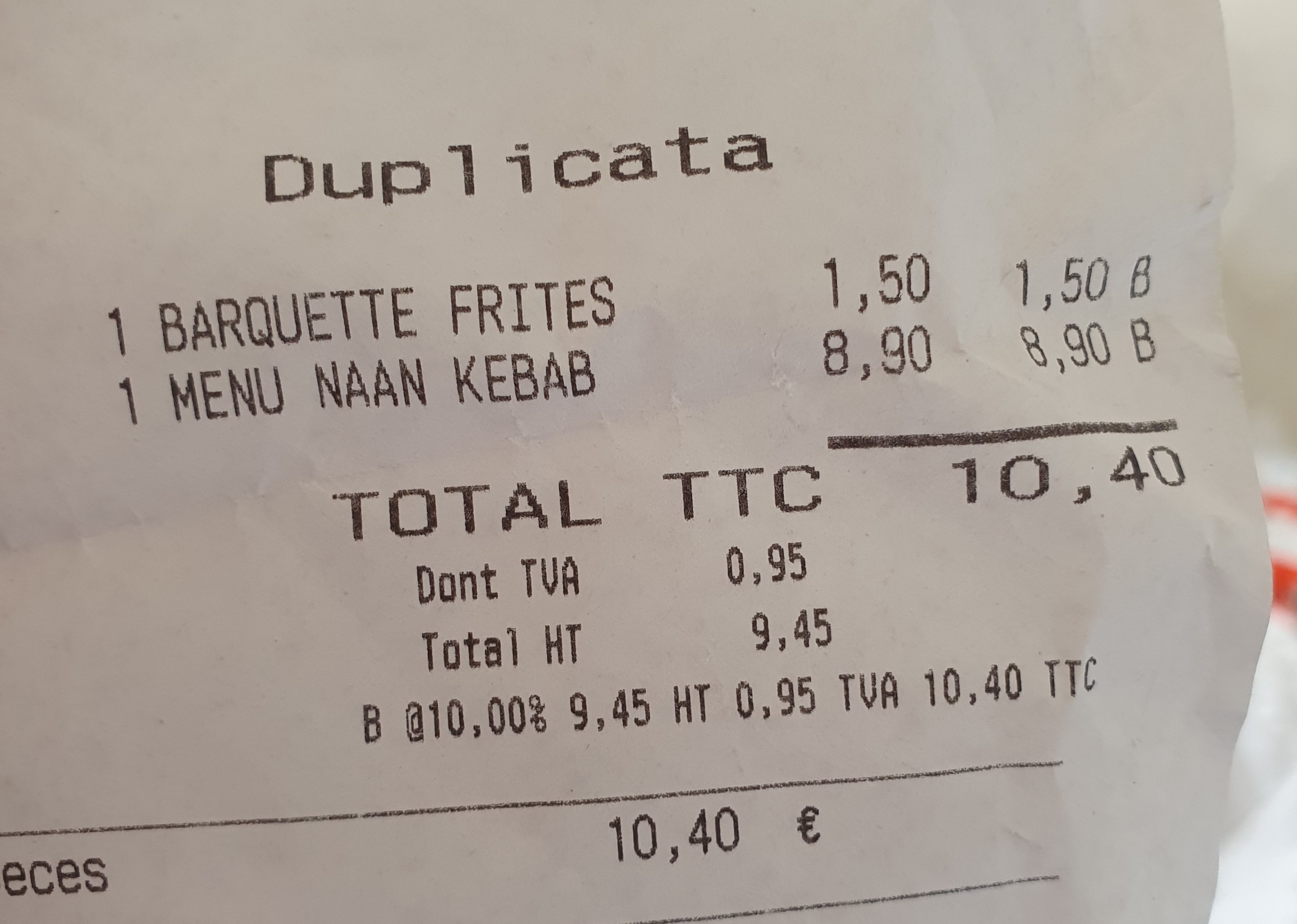 Le kebab n'est pas vraiment bon... surtout pour 7,90 euros