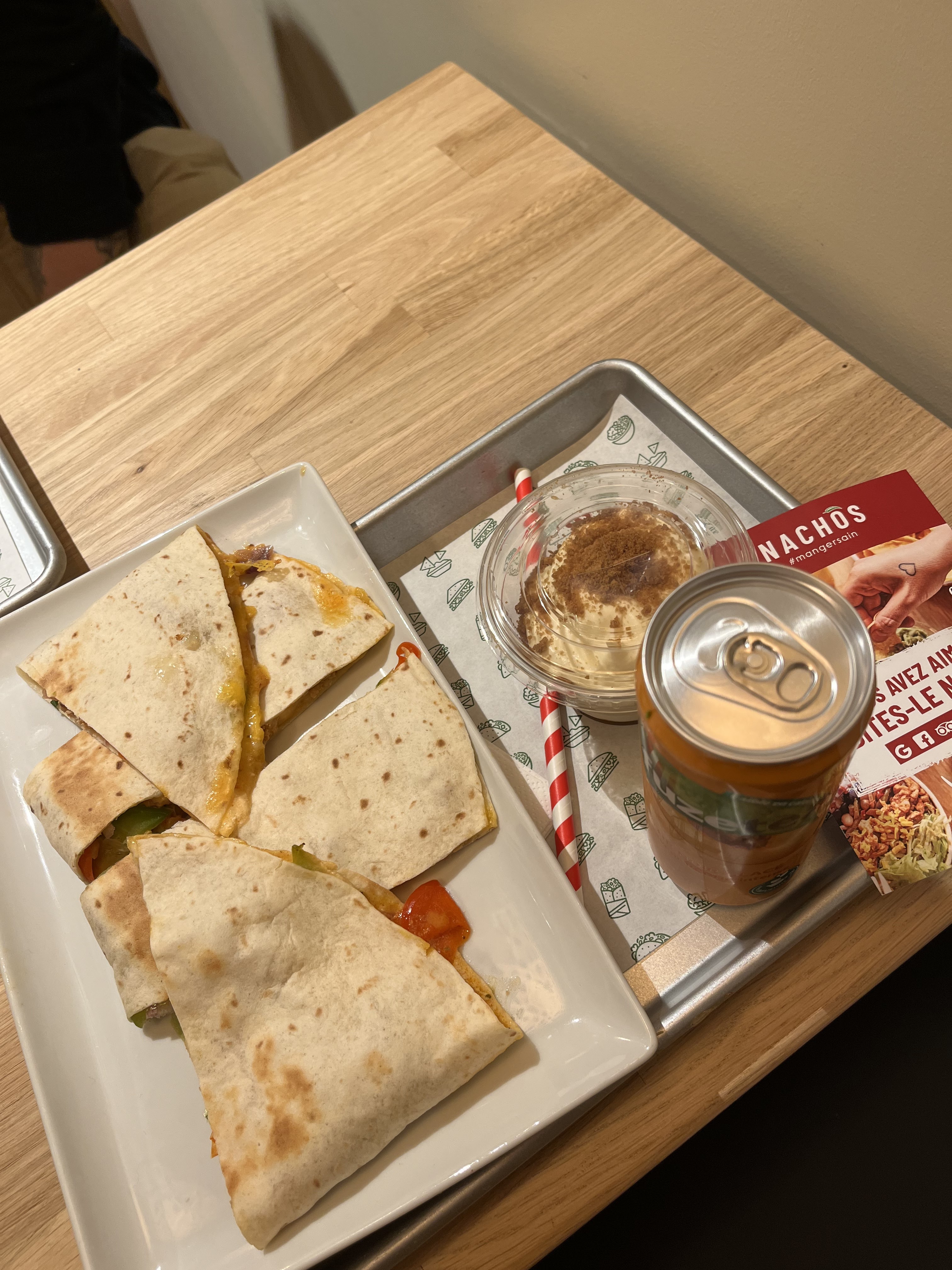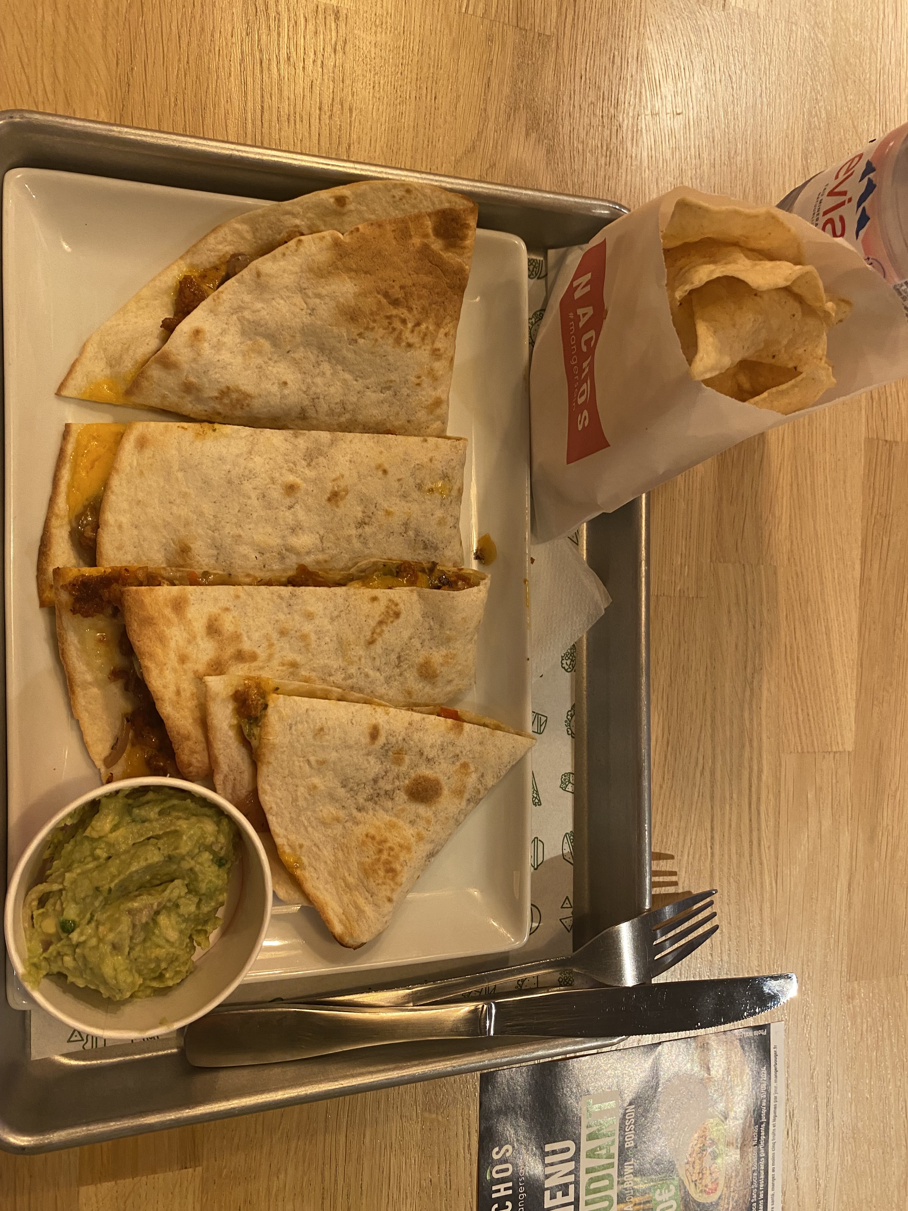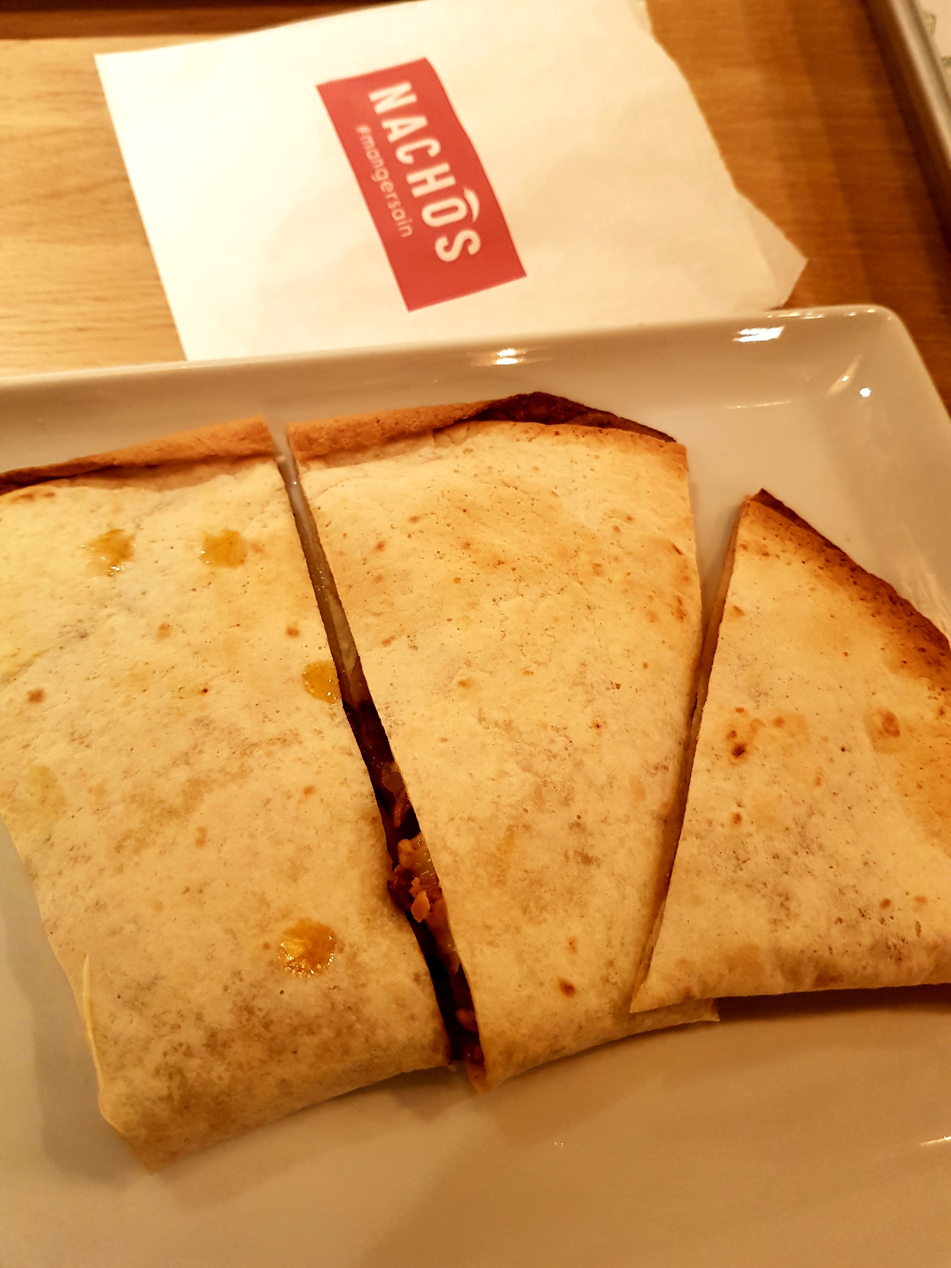 Première expérience chez NACHOS. Globalement pas déçu, la nourriture y est très bonne, de bons produits qui ont du goût. J'ai pris un quesadillas. Le seul bémol : étant un bon mangeur, je n'ai pas trouvé ça copieux.