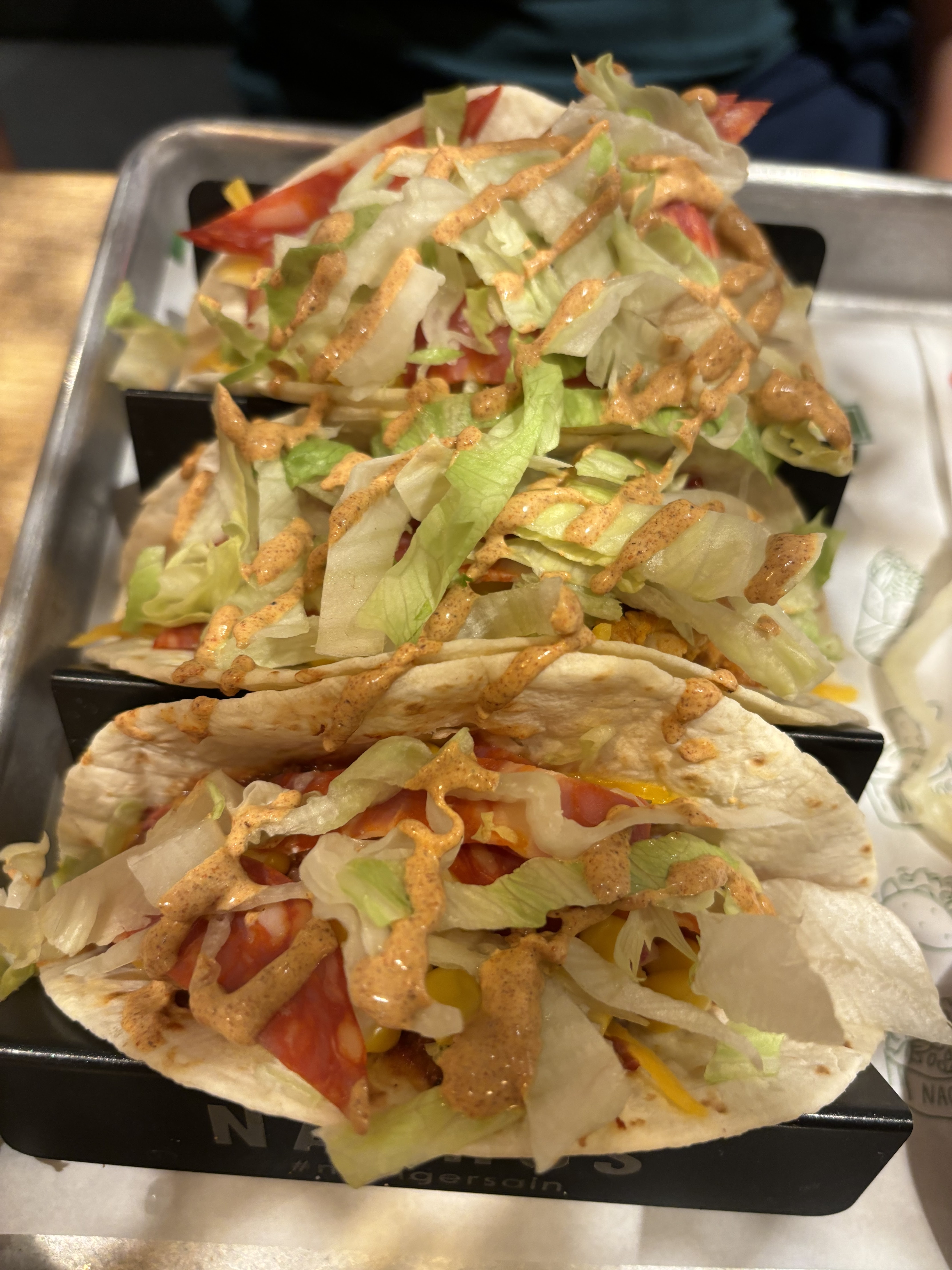 Bon repas que j’ai passé chez Nachos. Les produits sont frais. Les tacos sont excellents. Service rapide et l’accueil est très bon. Prix correct. Un peu déçu par le menu complet car le dessert ( ananas ) est très peu quantitatif. Mais bon rien de grave. 14 euros: 3 tacos / boisson / dessert.