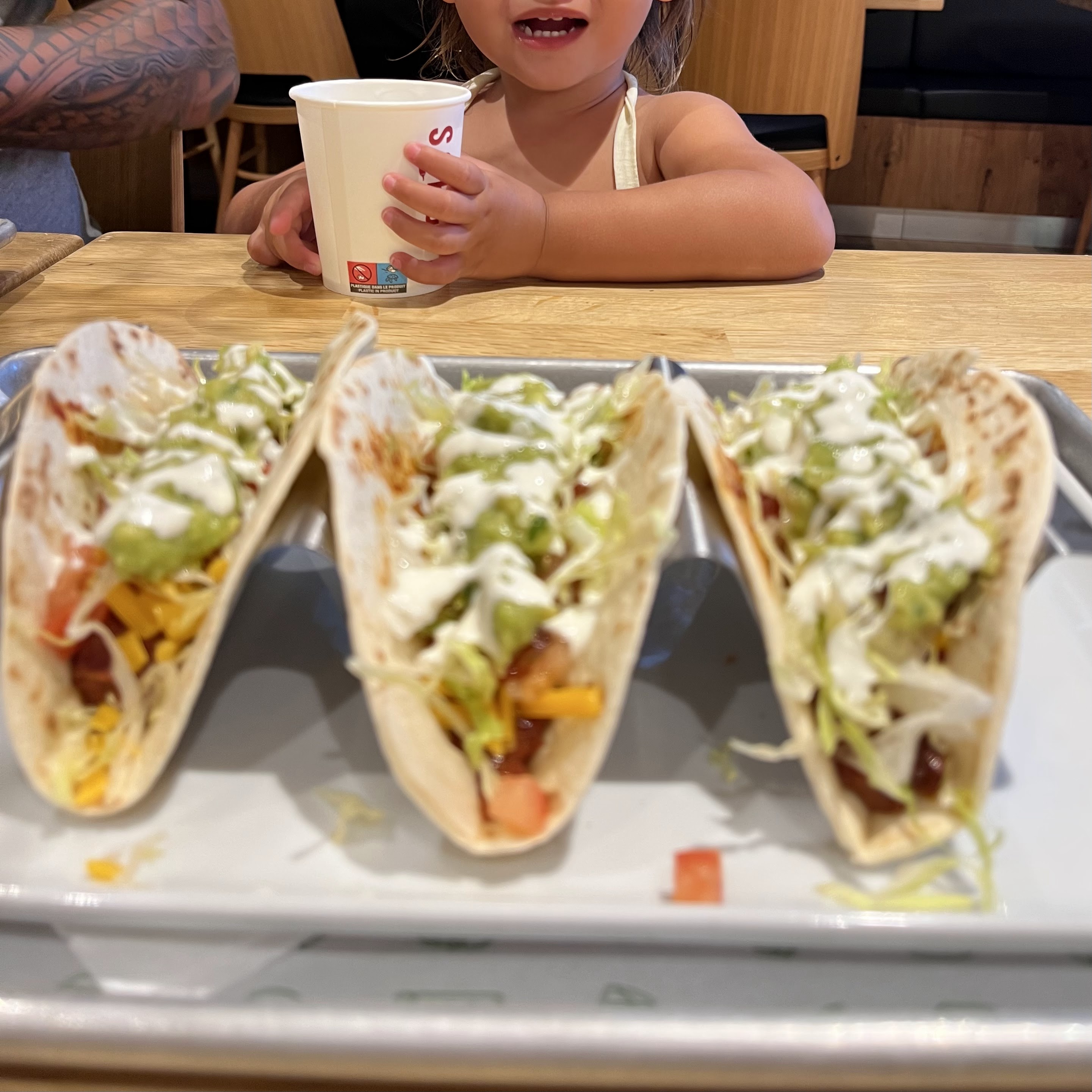 C’est la première fois qu’on mange ce type de cuisine, bonne expérience ! La sauce verte ( avocat?) est trop bonne, c’est frais, tacos sont aussi trop bon! Mon fils aime bien celui qui a dés fromage et poulet dedans! On reviendra !