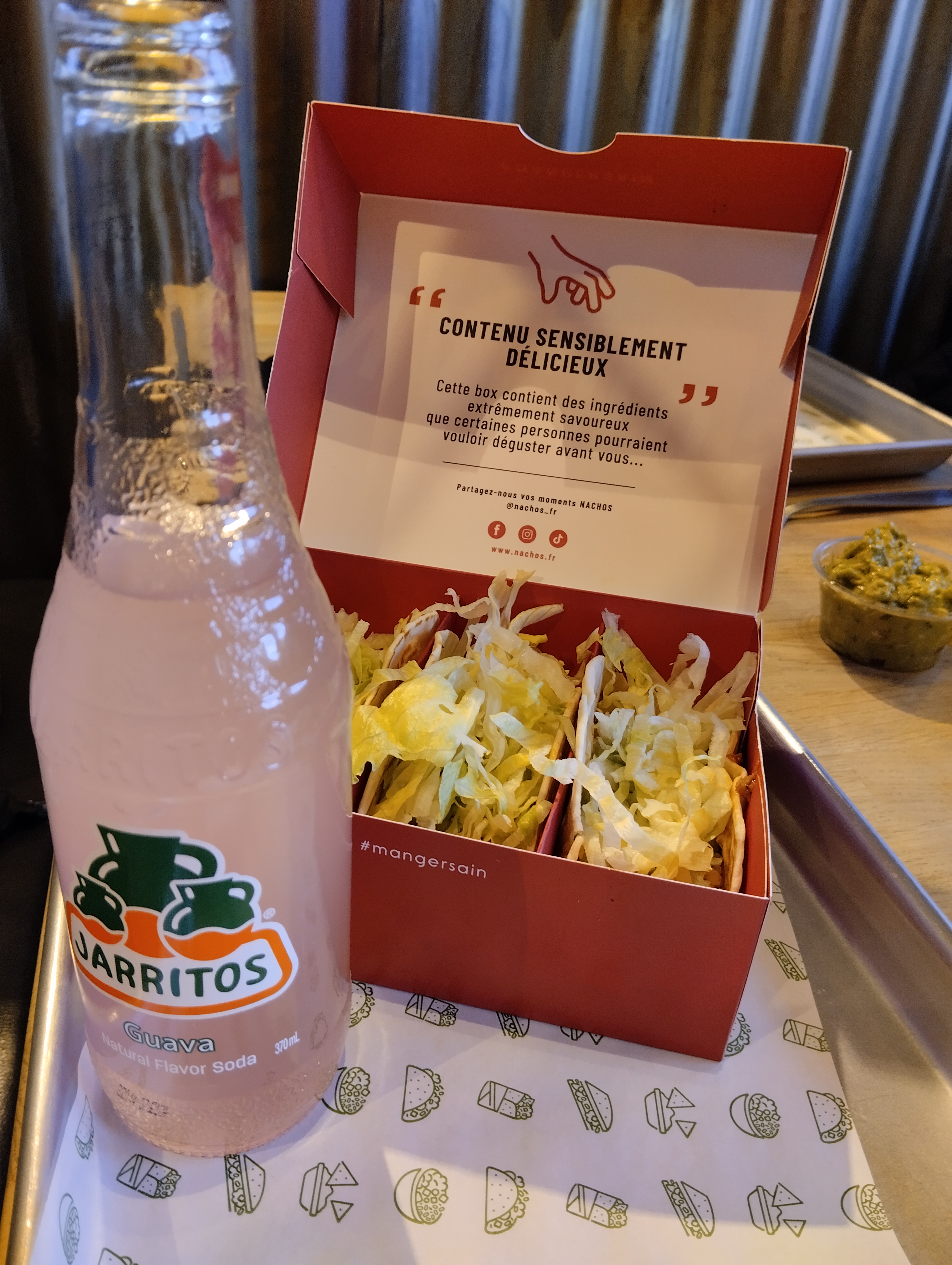 Première impression en entrant chez Nachos ? Décor aéré, clair et lumineux. Premier contact avec l'équipe du restaurant ? Vraiment agréable. Sourire et bonne humeur. Je ne connaissais pas du tout et je me suis senti pris en main et guidé pour la compréhension des choix possibles pour la composition de mon menu. Justement les choix, parlons en. Ni trop, ni pas assez, le bon équilibre. Tout du moins en ce qui me concerne (famille de 5 personnes pour 4 menus) La commande était amplement suffisante en quantité pour caler nos estomacs pour l'après midi. En quelques mots, merci pour l'accueil et le repas aux accents mexicains.