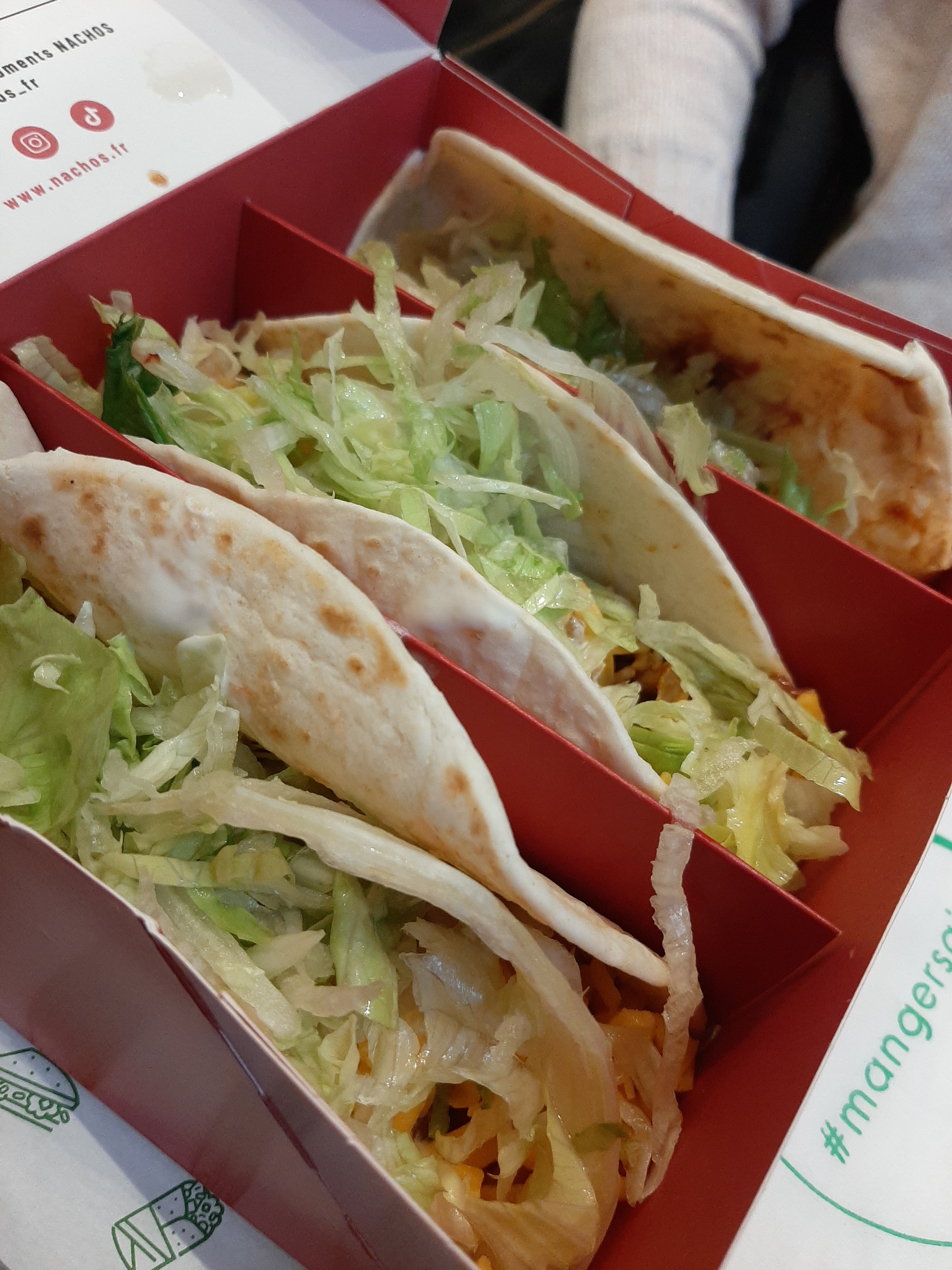 Super expérience pour notre première à Nachos. Venus en famille un midi des vacances, nous avons découvert un endroit super sympa : d'excellents tacos autant appréciés par les grands que les enfants, un lieu très agréable et surtout un personnel au top, sympas, efficaces et très commerçants. On recommande !