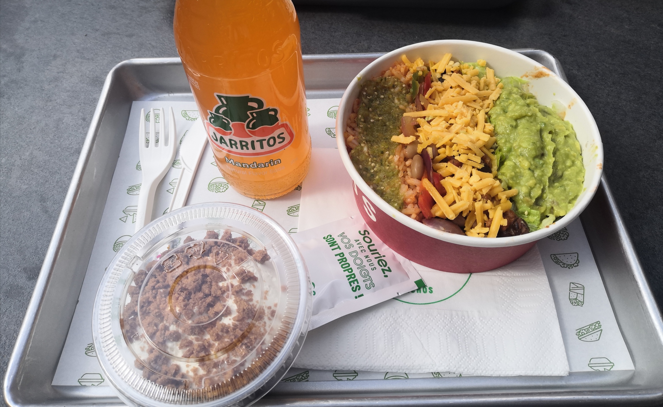 J'ai pris un bowl avec un supplément guacamole, pour le goût c'était assez bon mais pour la quantité c'était très peu pour le prix payé.... Ça ressemble limite à un menu enfant surtout que le bowl est rempli à moitié... dommage.