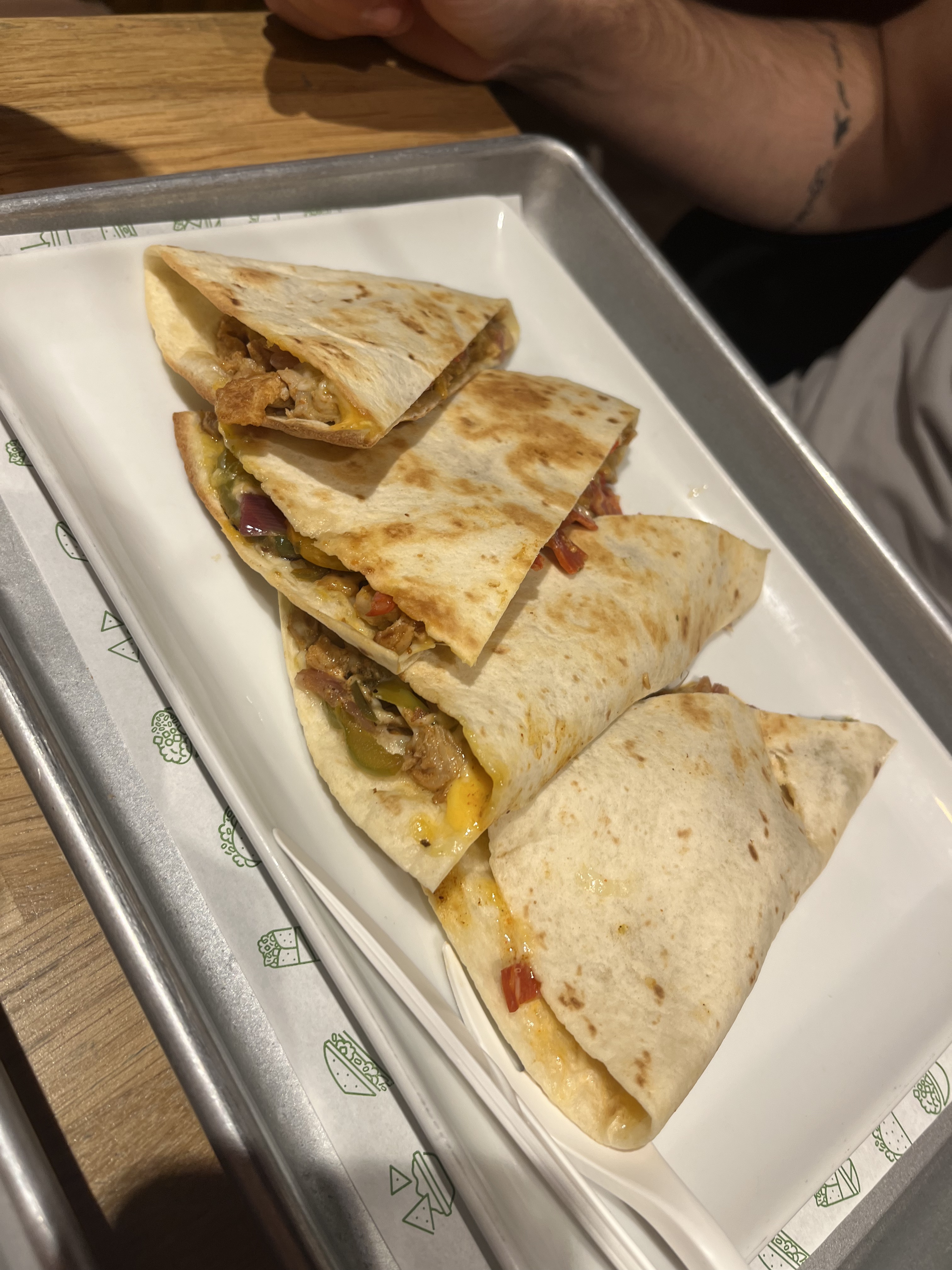 Édit: Commande pour 5 personnes deux fois qu'il manque un menus , 1 fois en décembre et aujourd'hui aussi, le responsable était au courant pour décembre, on devait avoir le menu aujourd'hui ce n'était pas complet, on ne va plus commander en gros Je suis végétarienne et j'ai commander 3 fois, c'est trop bon, les quesadillas sont excellents. J'ai convaincu ma sœur et mon beau-frère. Je recommande J'ai commander via UBER les frais de services aiie .