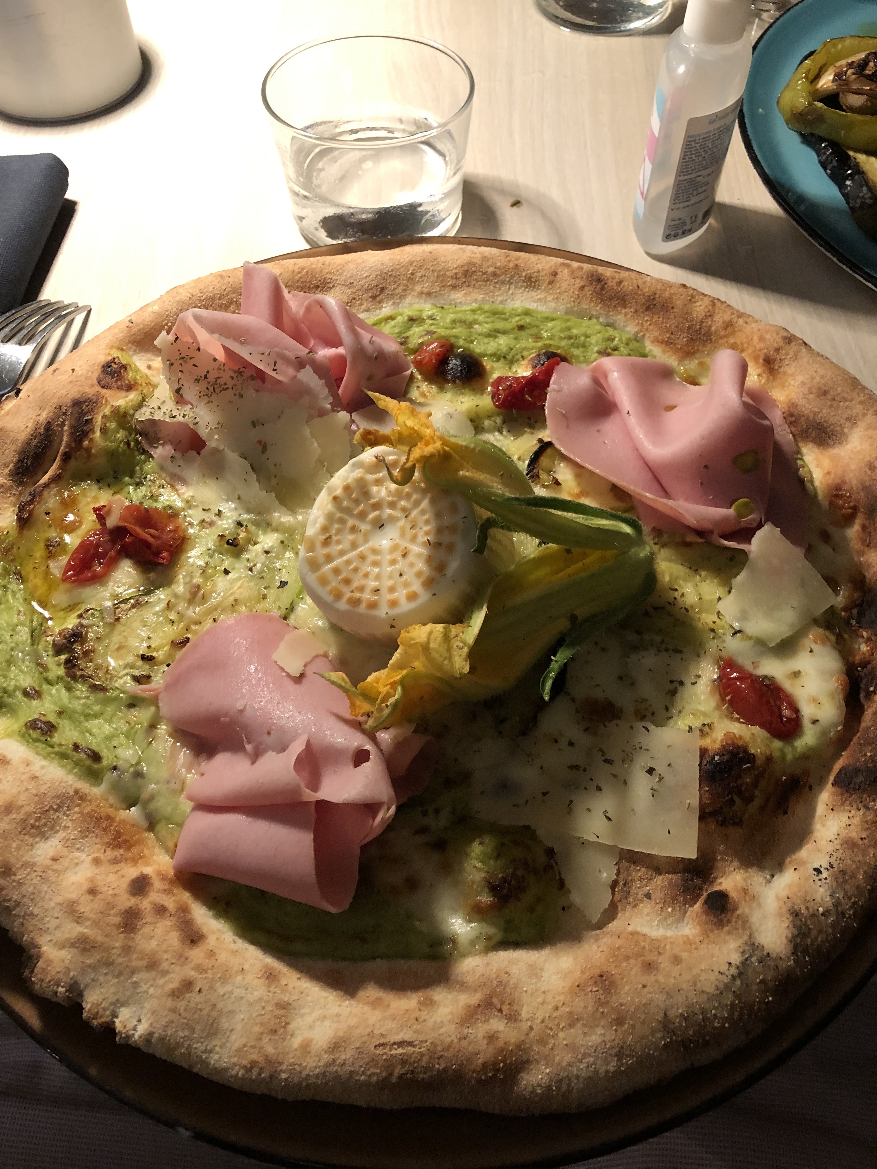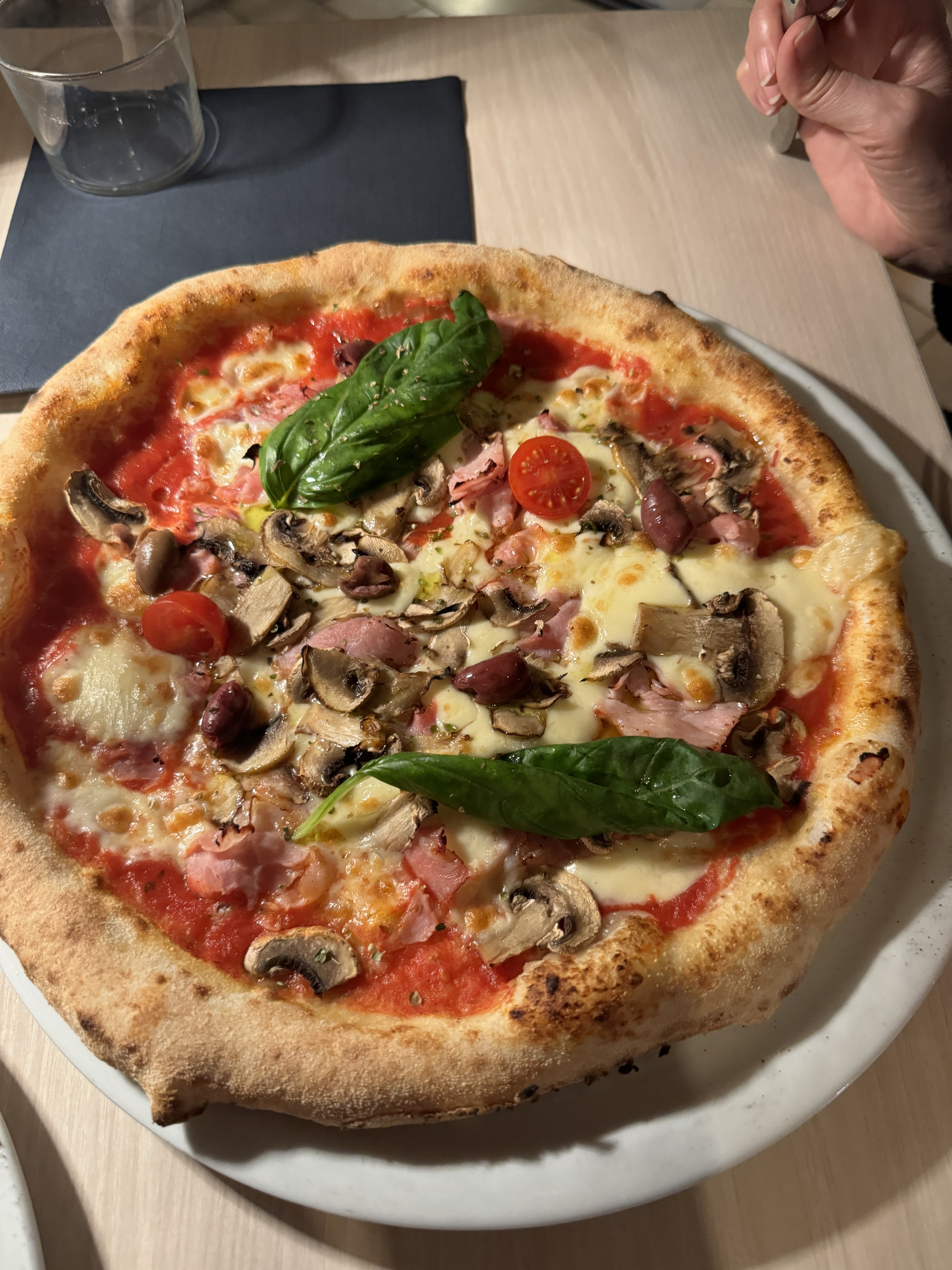 Nous avons déjeuné sur la place, bel espace, service charmant, nourriture délicieuse. Nous avons eu la pizza Regina et les raviolis aux artichauts. Les deux étaient délicieux (les pâtes avaient un bon claquement, la croûte de pizza et la sauce étaient similaires à nos expériences en Italie). Nous y retournerions certainement.