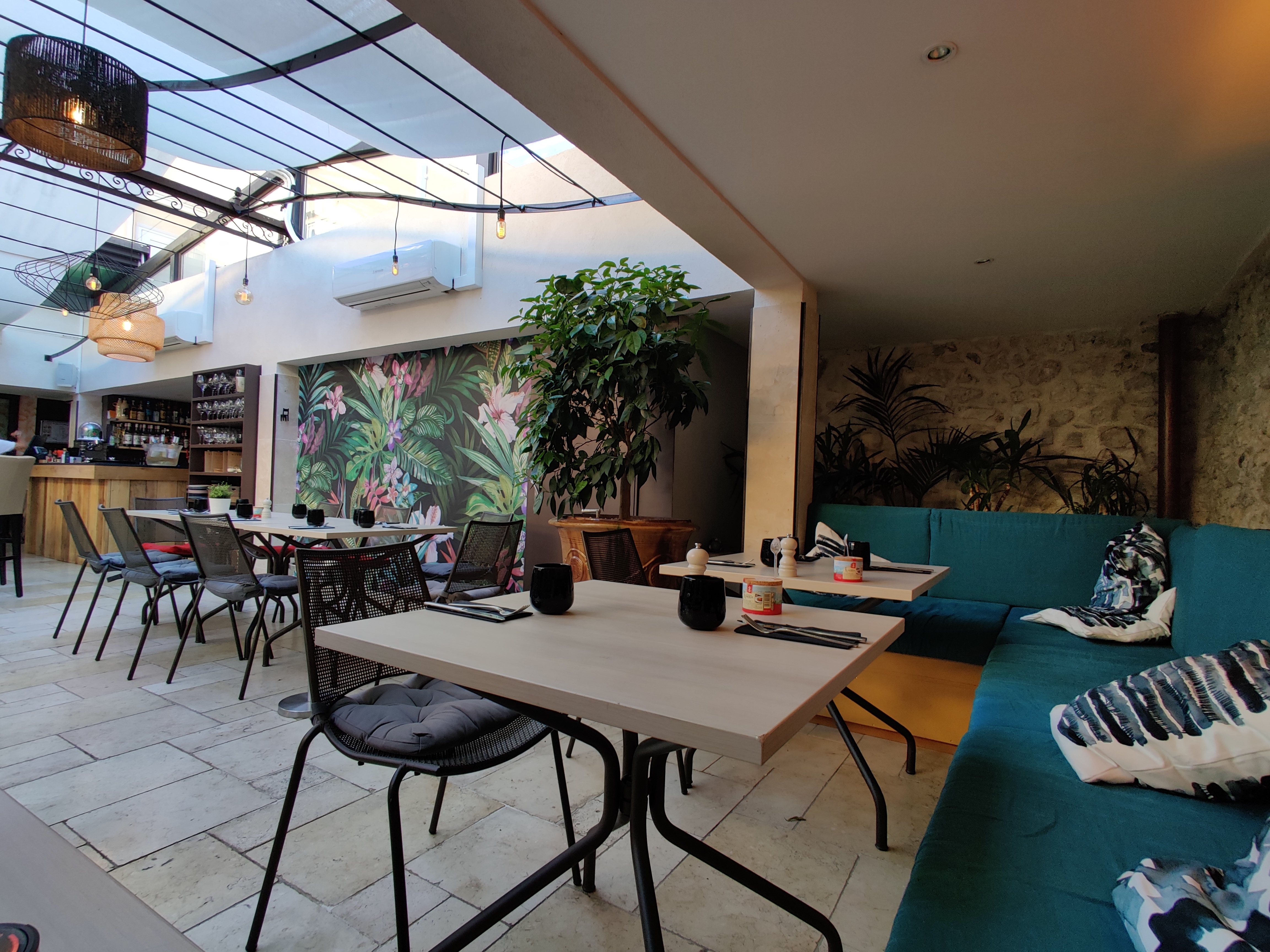 Belle surprise !! Si vous passez devant, il faut absolument rentrer à l'intérieur pour découvrir l'établissement qui est magnifique !! Découvrir la salle interieur avec sa verrière au fond !! Jai adoré la décoration et ce qui n'enlève rien et qui est aussi important, nous avons très bien déjeuné !!! Poulpe à la plancha un délice !! Belle découverte, nous reviendrons avec plaisirs !!