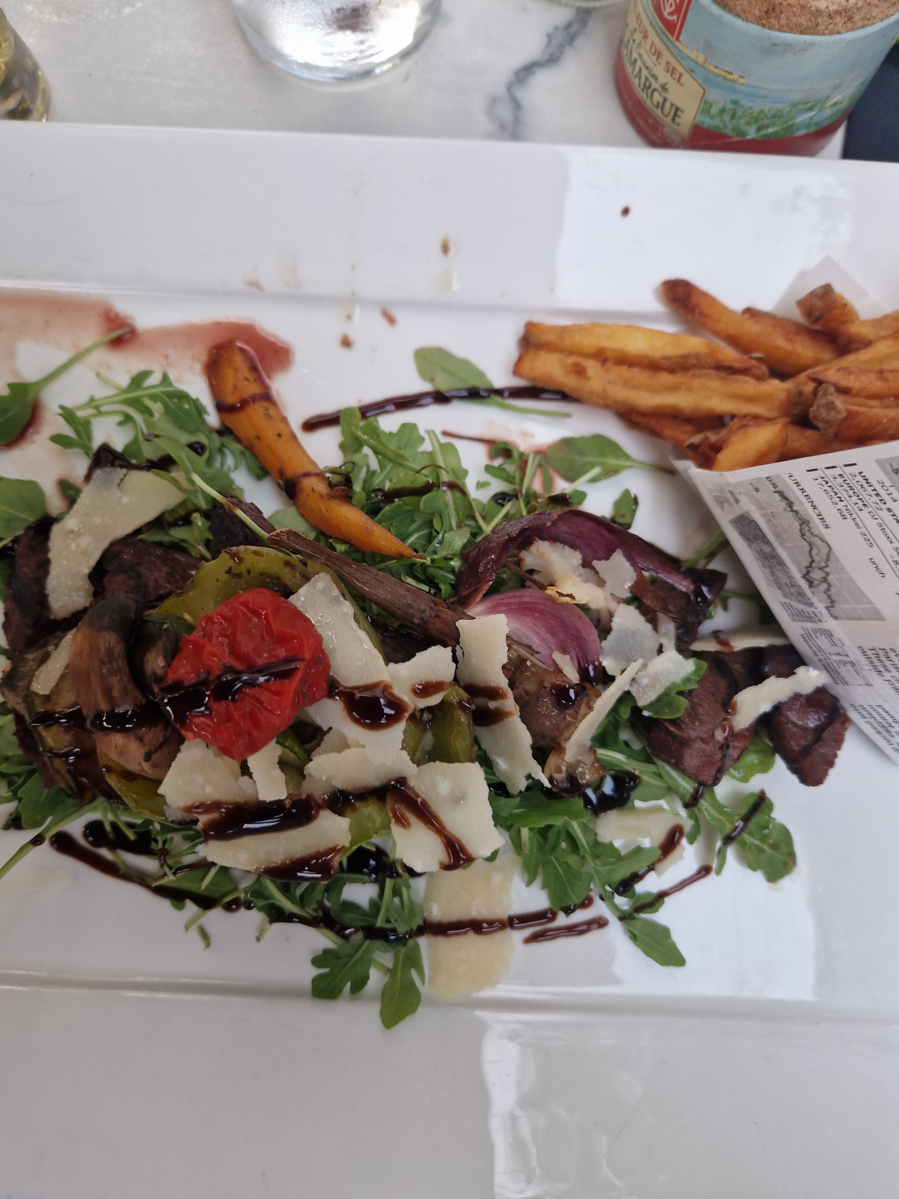 J'adore ce restaurant, j'y suis allé un soir après avoir essayé de réserver quelques restaurants avec quelques refus, heureusement celui-ci nous a accepté (5 personnes). Il peut être difficile d'avoir une table sans réservation pendant la haute saison à Antibes, alors mieux vaut planifier votre repas à l'avance, appelez et réservez-le à l'avance, sauf si vous aimez un restaurant très fréquenté avec un minimum de services. Le restaurant est situé au centre de la vieille ville qui était assez fréquentée. Nous avons mangé dehors sur la place mais vous pouvez aussi vous asseoir à l'intérieur ; c'est énorme! La portion de nourriture est grande !! Le prix était abordable. Nous avions une entrée à partager et c'était tout simplement parfait ! Tout était si délicieux. J'ai dû demander à emporter les restes cependant😆 c'était assez surprenant de voir un bon restaurant dans une zone touristique donc je reviendrai ! Je le recommande vivement 👍👍👍