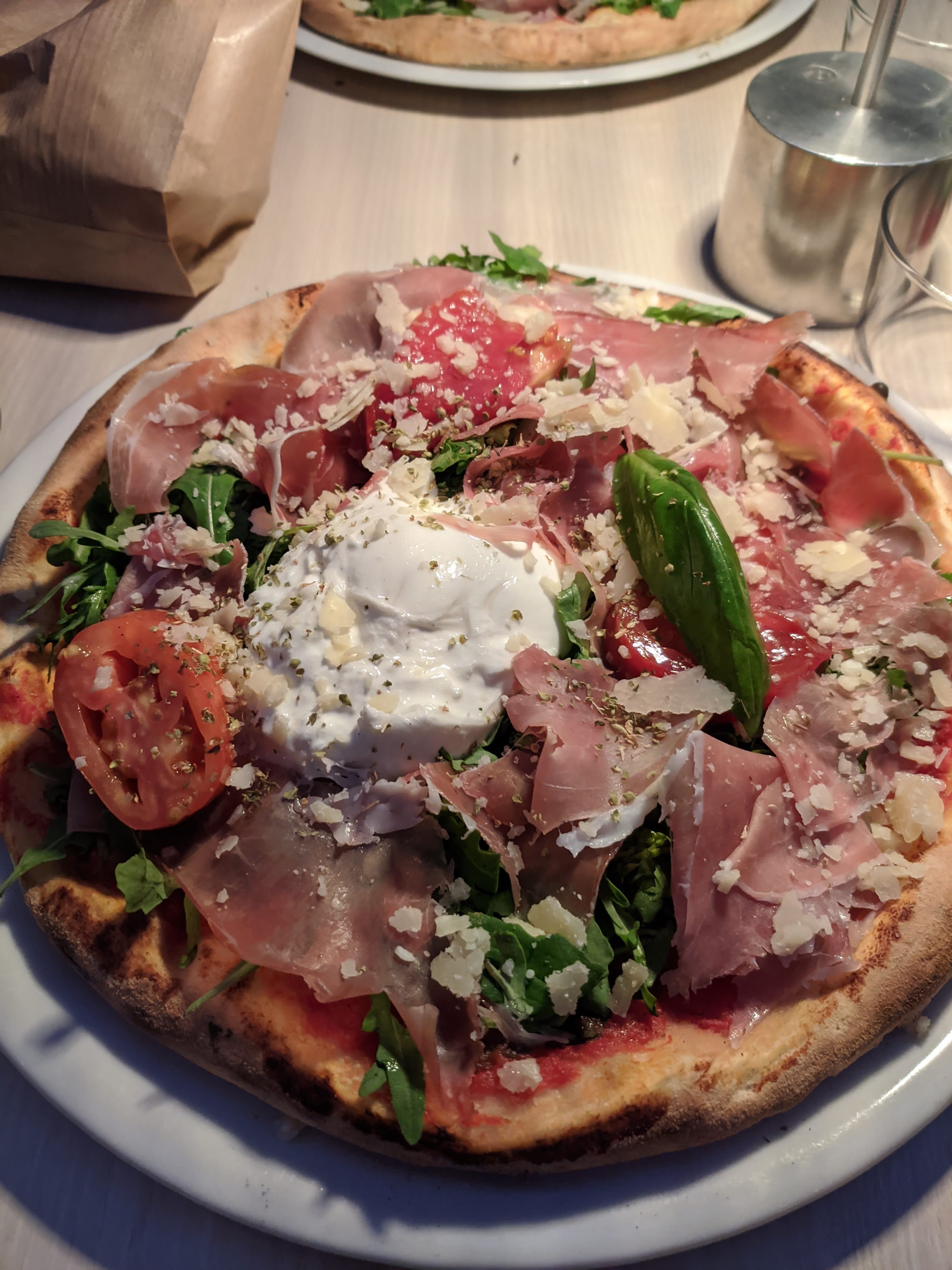 Heureusement, j'ai réussi à avoir une table à 19 heures sans réservation, mais je recommanderais de réserver car il y avait beaucoup de monde. La nourriture était absolument délicieuse. Nous avons eu l'entrée parmagina et stracciatella, les deux étaient 10/10. Pour le plat principal, nous avons eu le bar qui était une bonne portion et était accompagné de savoureux plats d'accompagnement!