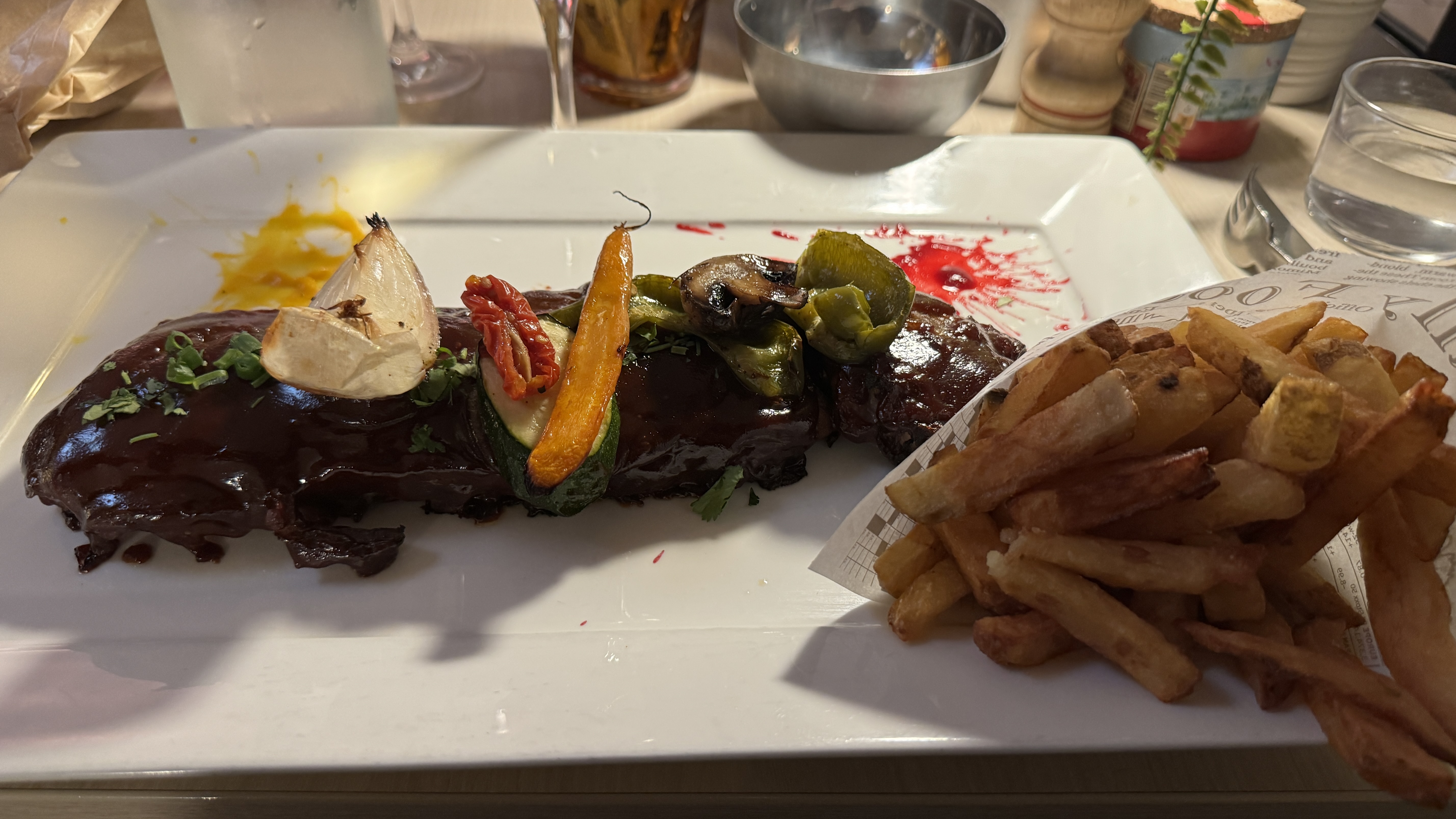 Bon service et nourriture excellente pour un prix raisonnable ! Nous avons eu le : - Poulpe, qui était génial et très tendre - Les côtes, l'une des meilleures que nous ayons jamais mangées, sont tombées des os. Cela pourrait cependant aller avec un peu moins de sauce. - steak irlandais, viande de très bonne qualité et bien chronométrée - bars de mer, bon assaisonnement, bien chronométrés, accompagnés de bons légumes grillés