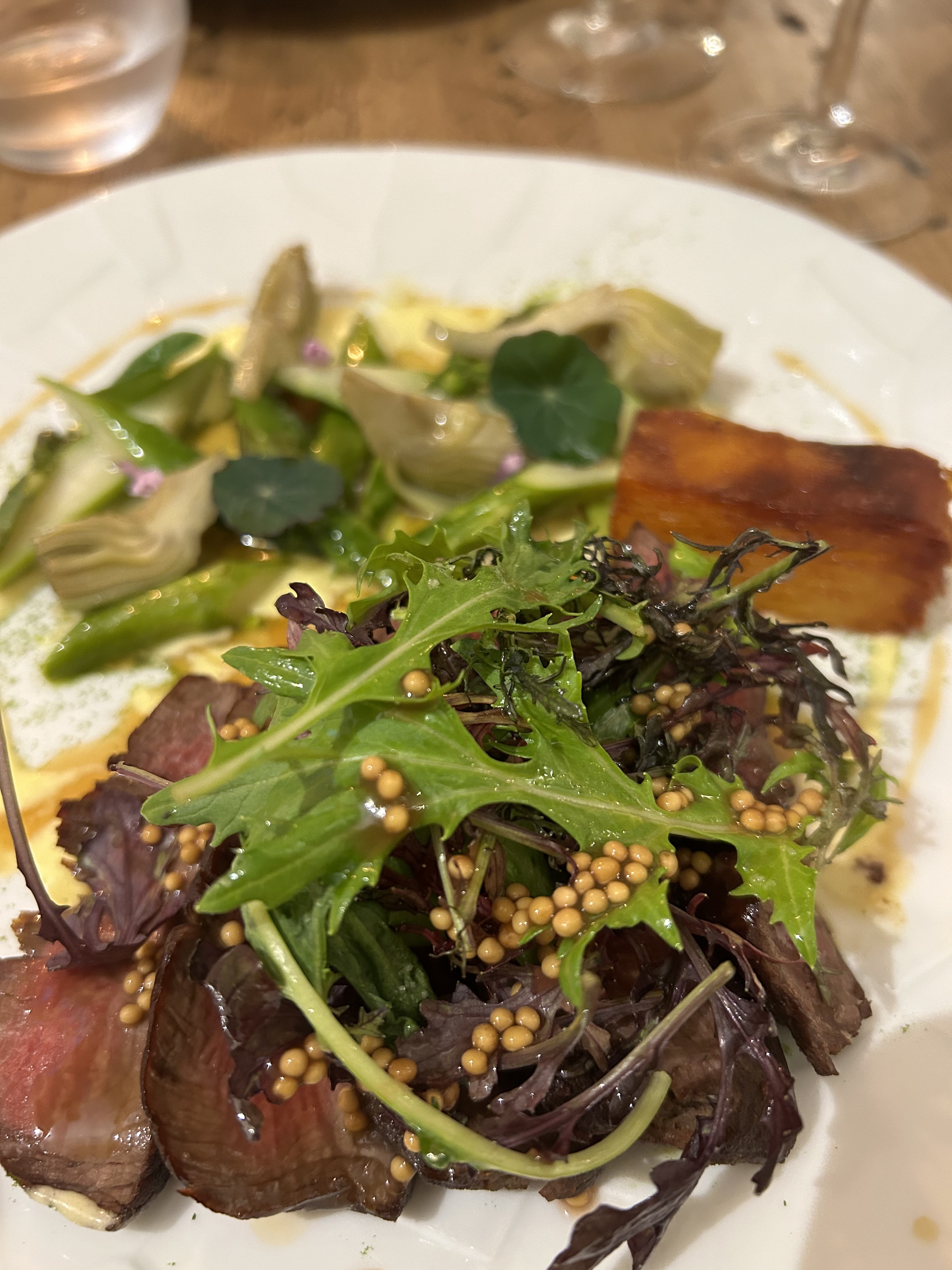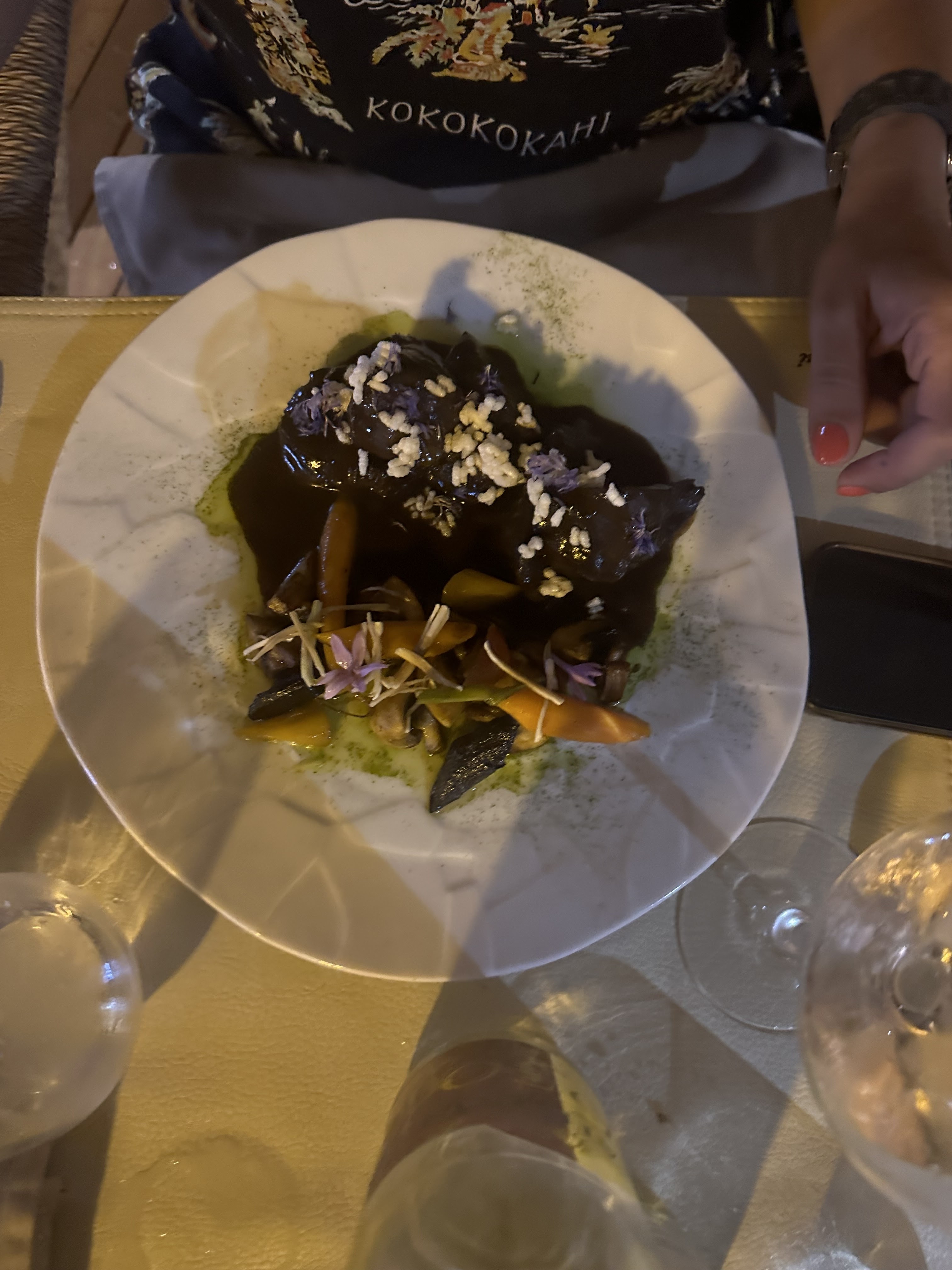 Je suis venu ici à la recherche d'un endroit pour manger avec ma partenaire et mes parents. Le chef était à l'extérieur et était assez sympathique pour discuter du menu et des allergies. La nourriture était délicieuse et incorporait tous les grands éléments qui composent un bon plat: le sel, l'acide gras et la chaleur. Ce repas était l'un de ceux pour lesquels on se souvient d'une région. 4 étoiles sur le service en raison de l'incohérence avec le mocktail (pas de sucre sur le rebord du verre comme le premier), on ne nous a pas demandé si nous voulions plus de boissons et au départ on ne nous a pas servi de polenta avec mon plat principal. Dans l’ensemble, c’est une super expérience autrement.