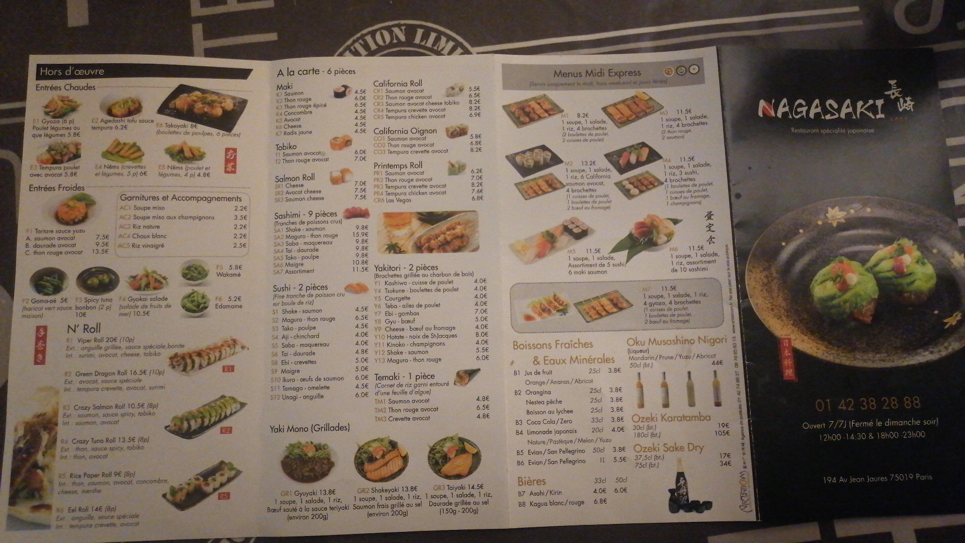 Voici toutes les informations sur le Restaurant japonais Nagasaki qui ce trouve au 194 Av. Jean Jaurès, 75019 Paris (75). Sur cette fiche vous trouverez les photos, l'adresse, les horaires d'ouverture, le numero de téléphone et les avis clients.Vous pouvez églement rédiger un avis si vous le souhaitez en bas de page.