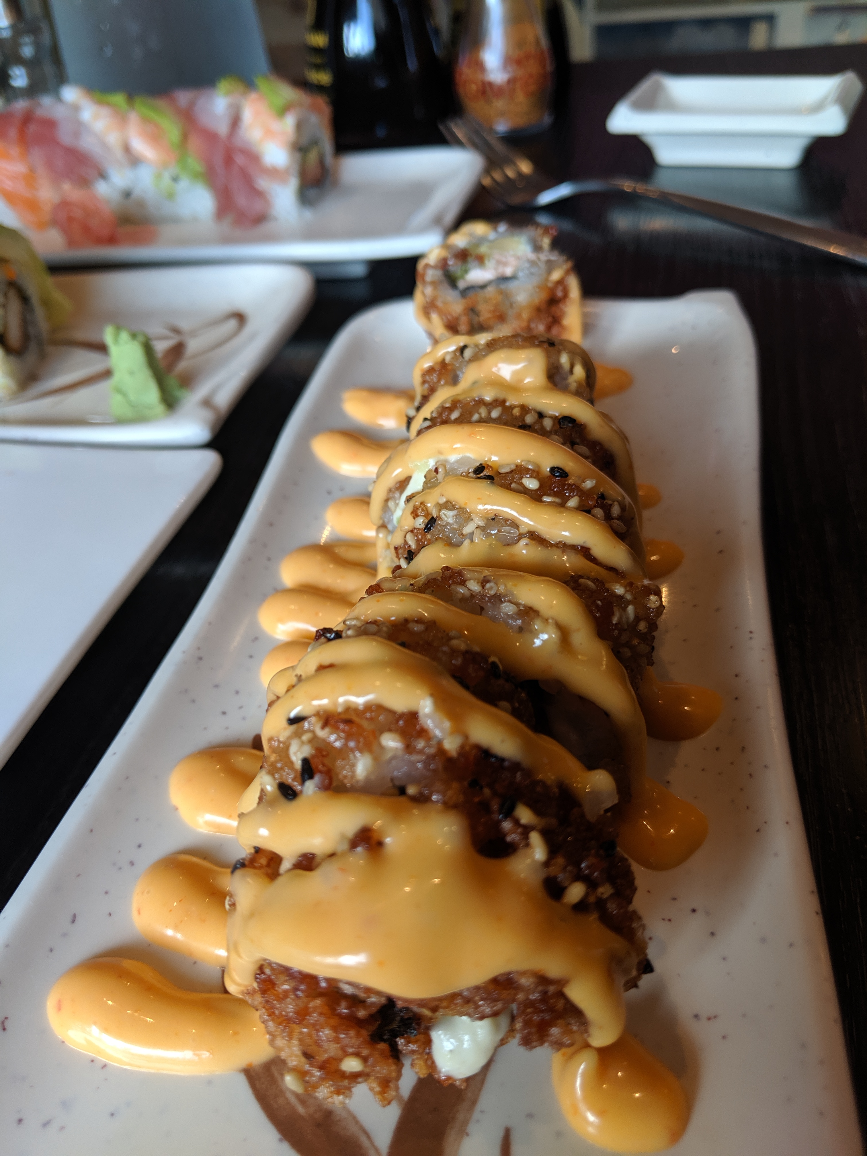 Nous commandons réguliérement a emporter ou en livraison et c'est toujours un régal ! Les gérants sont ultra sympathiques et nous offre toujours quelque chose en plus. Je vois des commentaires négatifs mais seuls les gastronomes et les trop exigeants trouveront quelque chose a redire. On ne s'en lassera jamais ! Mention spéciale pour le Dragon avocat et les Oignons Frit Roll thon cuit avocat 👍