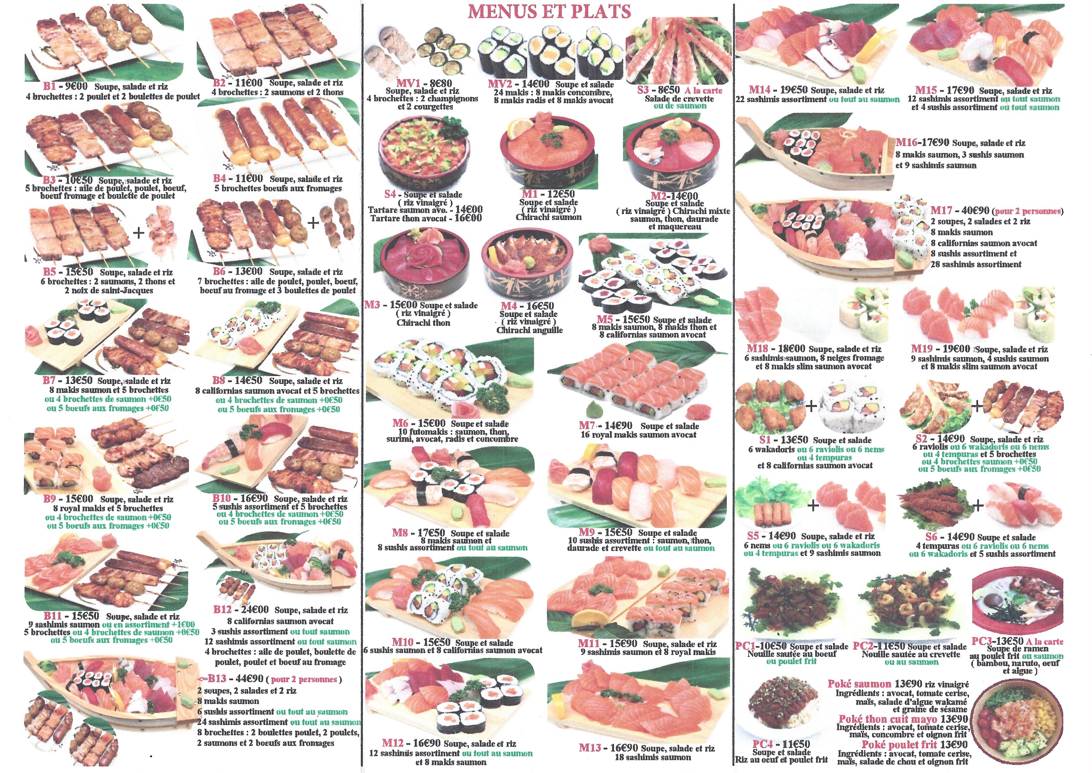 Restaurant 🍣 à deux pas de la mairie de Sannois. On peut y manger sur place ou à emporter. Pensez a téléphoné pour vos commandes, ce restaurant est très sollicité le soir et les mets se font a la demande. Donc un peu d'attente. Je joints quelques photos des menus pour vous donner une idée. Attention les prix peuvent varier en fonction des années des photos. 😉