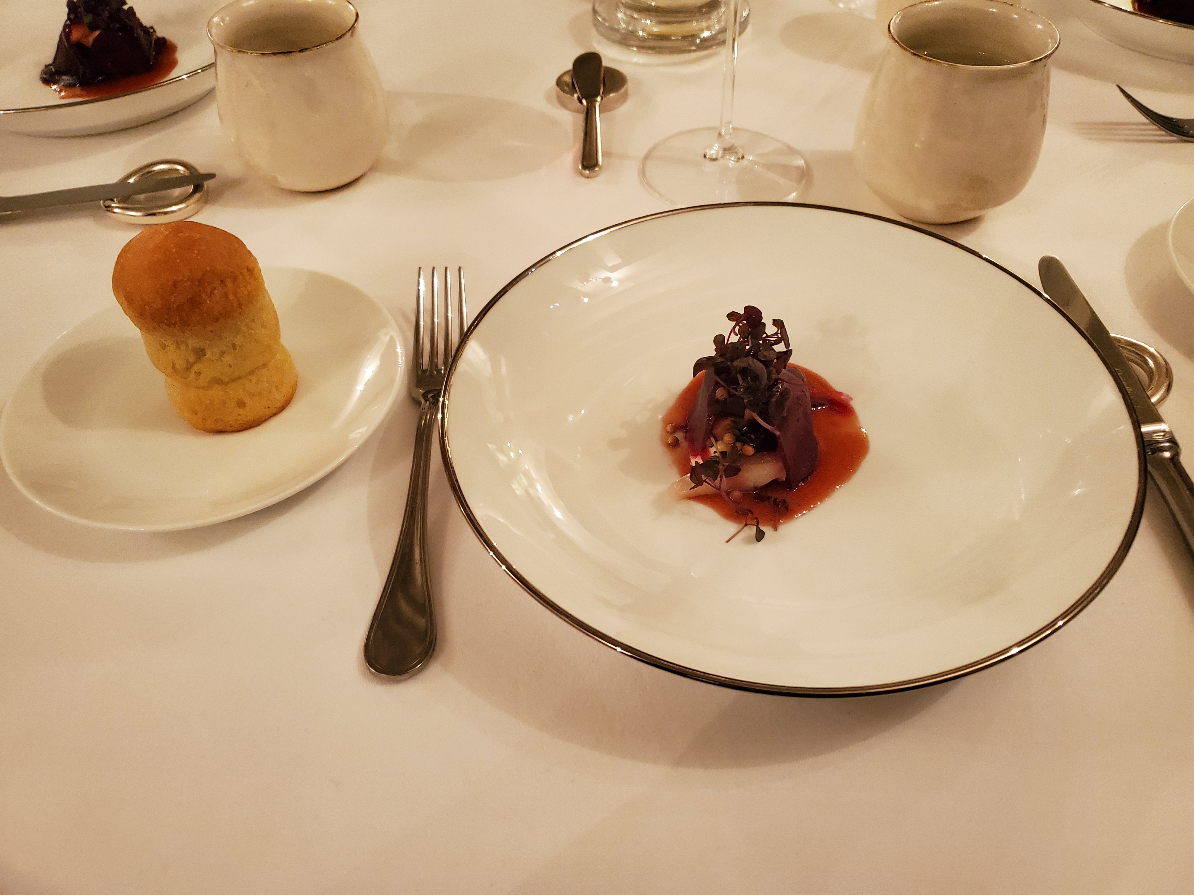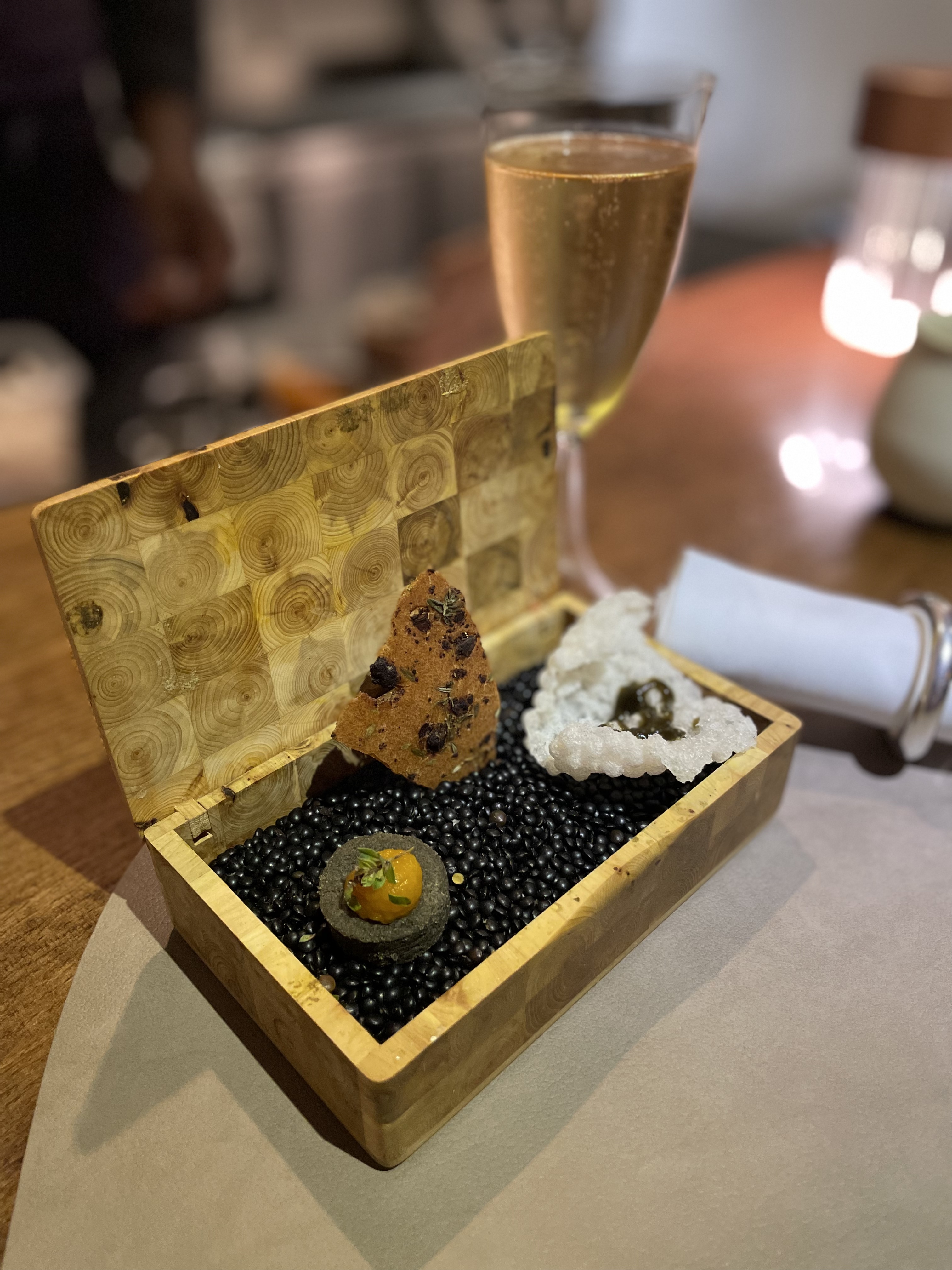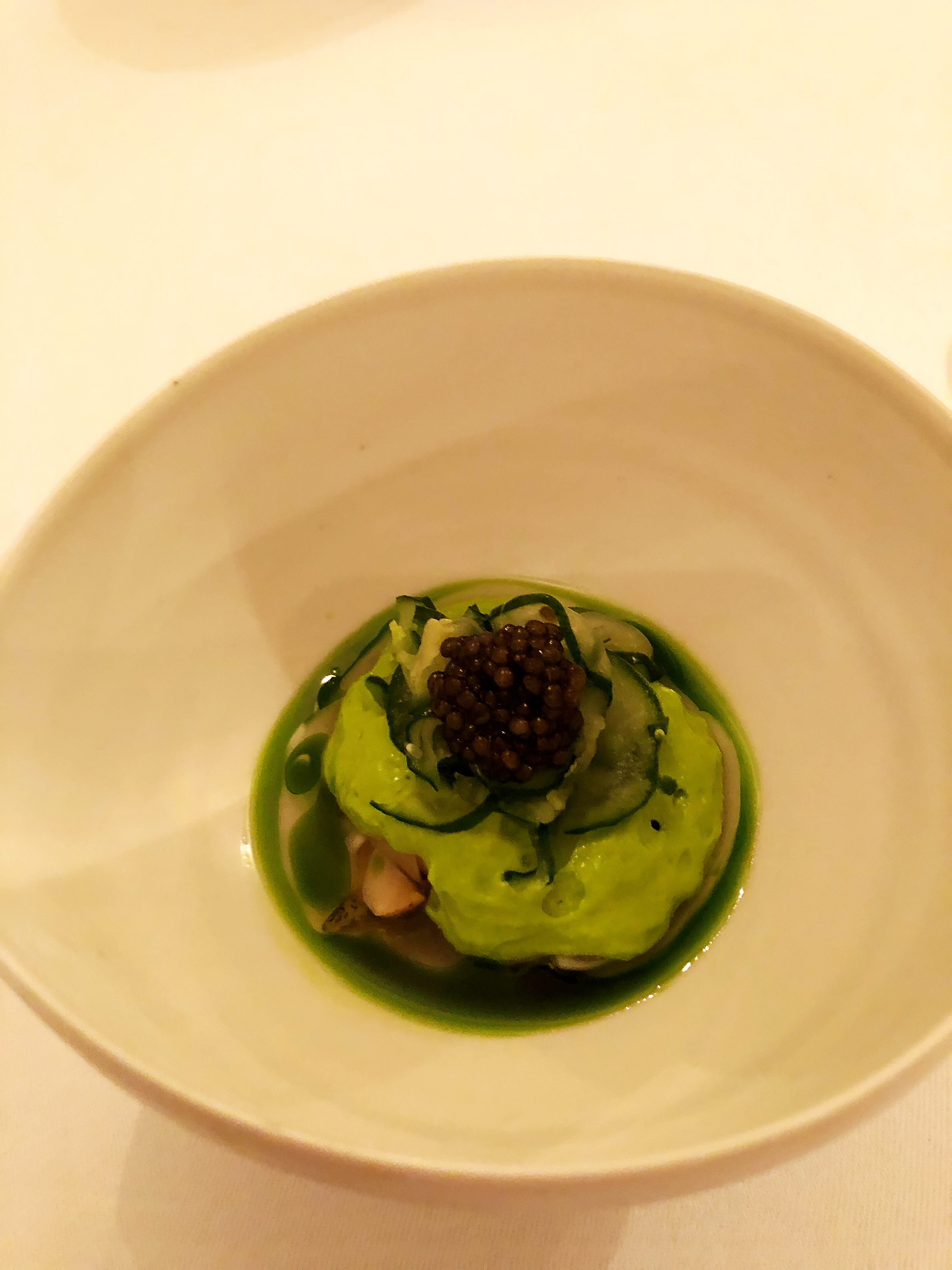 Un restaurant très intime et élégant, avec une très petite salle à manger (ce qui est charmant - c'est vraiment agréable de n'avoir que quelques tables plutôt que d'être au milieu d'une mer de monde). Nous avons eu de la chance, car nous étions les seuls présents : les autres convives avaient annulé pour la soirée et le restaurant est resté ouvert rien que pour nous. La présentation et le service étaient extrêmement bons - le placage était très joli et les serveurs étaient sympathiques, avaient de bonnes connaissances et ont passé du temps avec nous pour expliquer les combinaisons de plats. Cependant, la nourriture elle-même était décevante - avec deux des plats (l'anguille et le saint-pierre), les saveurs ne s'accordaient pas bien et l'anguille / saint-pierre forte prenait le pas sur les autres éléments des plats. L'un des plats était constitué de ris de veau, que mon partenaire ne mange pas (je pensais que c'était plutôt bon - mais c'est une préférence personnelle). Les saveurs du désert ne formaient pas non plus de manière tout à fait cohérente une structure équilibrée. Dans l'ensemble, même si le personnel et le chef/propriétaire étaient très généreux, sympathiques et serviables, la nourriture était décevante et ne répondait pas à nos attentes.
