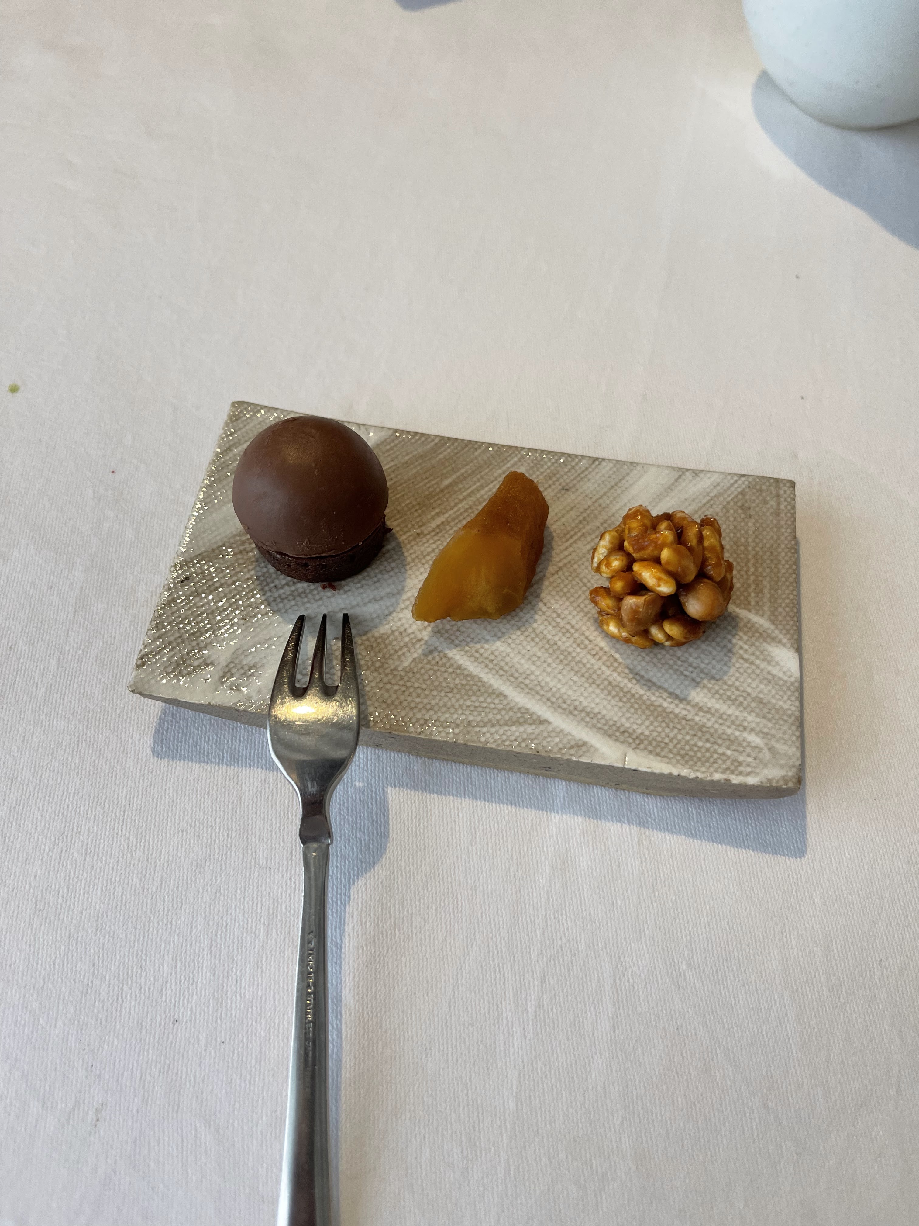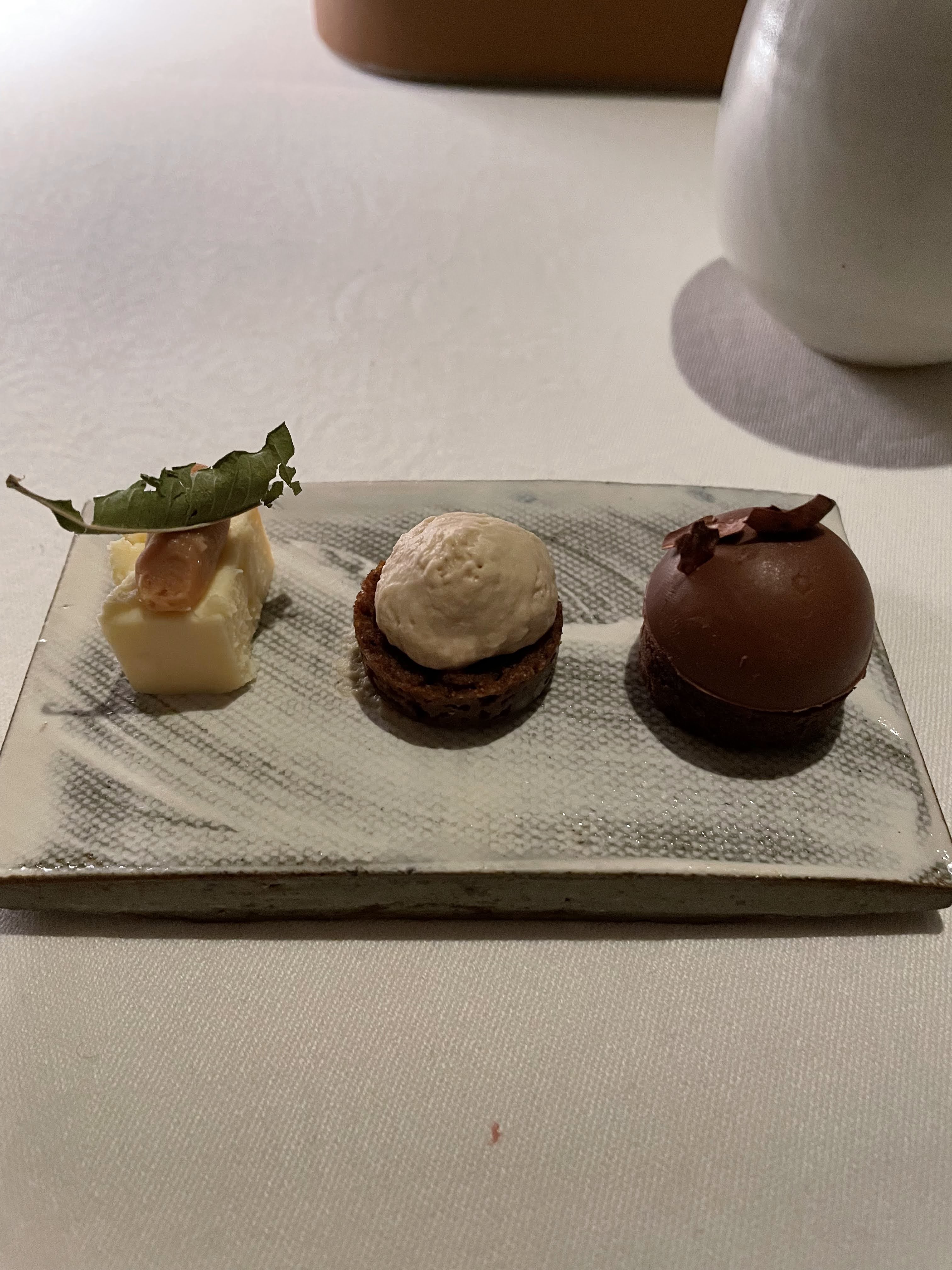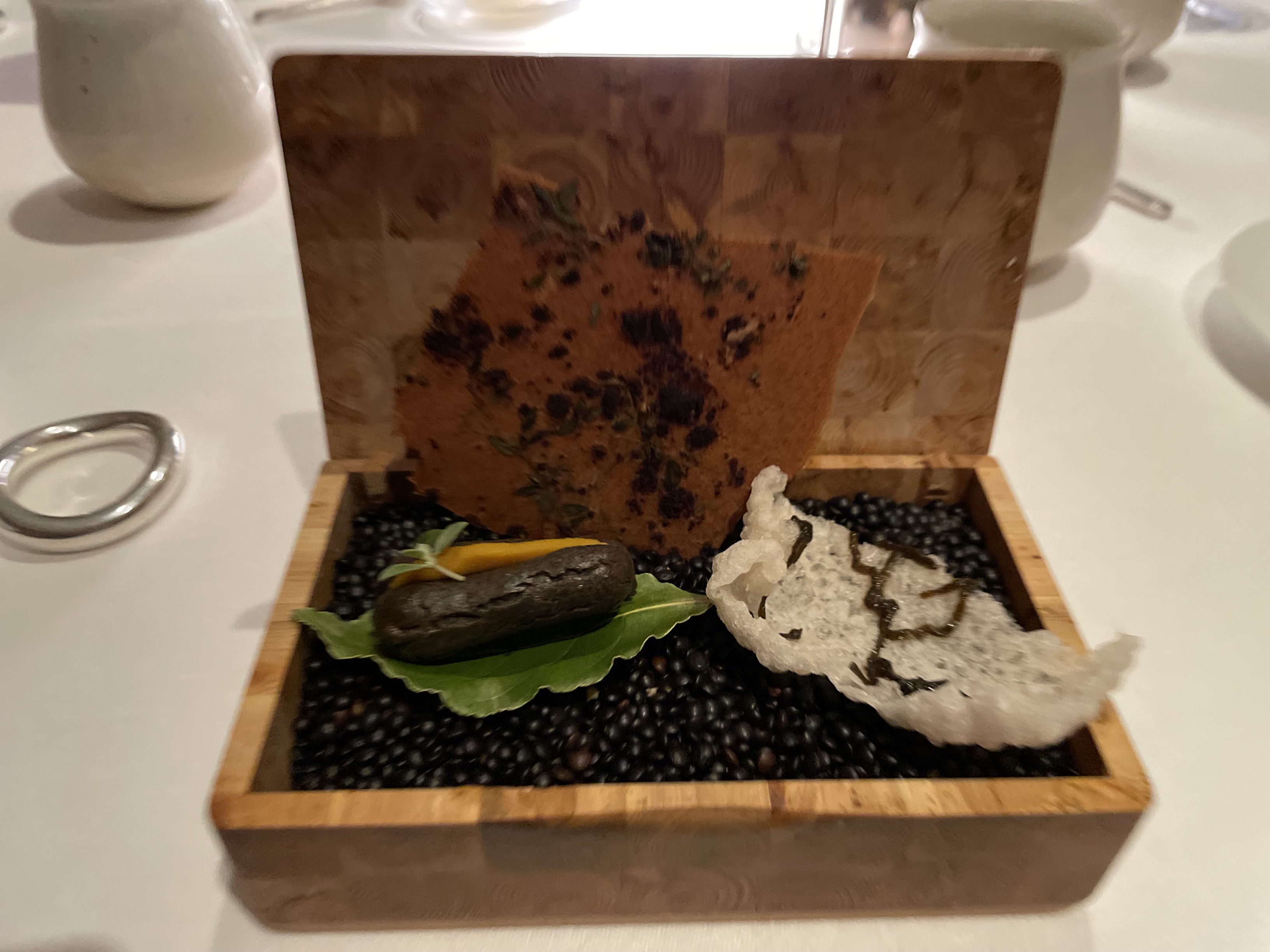Un restaurant très intime et élégant, avec une très petite salle à manger (ce qui est charmant - c'est vraiment agréable de n'avoir que quelques tables plutôt que d'être au milieu d'une mer de monde). Nous avons eu de la chance, car nous étions les seuls présents : les autres convives avaient annulé pour la soirée et le restaurant est resté ouvert rien que pour nous. La présentation et le service étaient extrêmement bons - le placage était très joli et les serveurs étaient sympathiques, avaient de bonnes connaissances et ont passé du temps avec nous pour expliquer les combinaisons de plats. Cependant, la nourriture elle-même était décevante - avec deux des plats (l'anguille et le saint-pierre), les saveurs ne s'accordaient pas bien et l'anguille / saint-pierre forte prenait le pas sur les autres éléments des plats. L'un des plats était constitué de ris de veau, que mon partenaire ne mange pas (je pensais que c'était plutôt bon - mais c'est une préférence personnelle). Les saveurs du désert ne formaient pas non plus de manière tout à fait cohérente une structure équilibrée. Dans l'ensemble, même si le personnel et le chef/propriétaire étaient très généreux, sympathiques et serviables, la nourriture était décevante et ne répondait pas à nos attentes.
