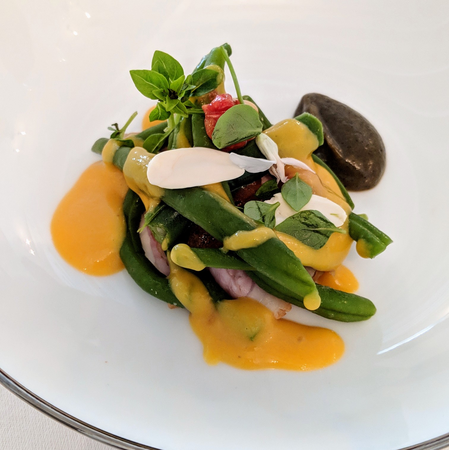 Un splendide déjeuner.Des mises en bouche subtiles,un poisson le saint pierre merveilleux par la qualité du produit et sa juste cuisson,un porc ibérique très moelleux et un dessert à se damner..évidemment au chocolat