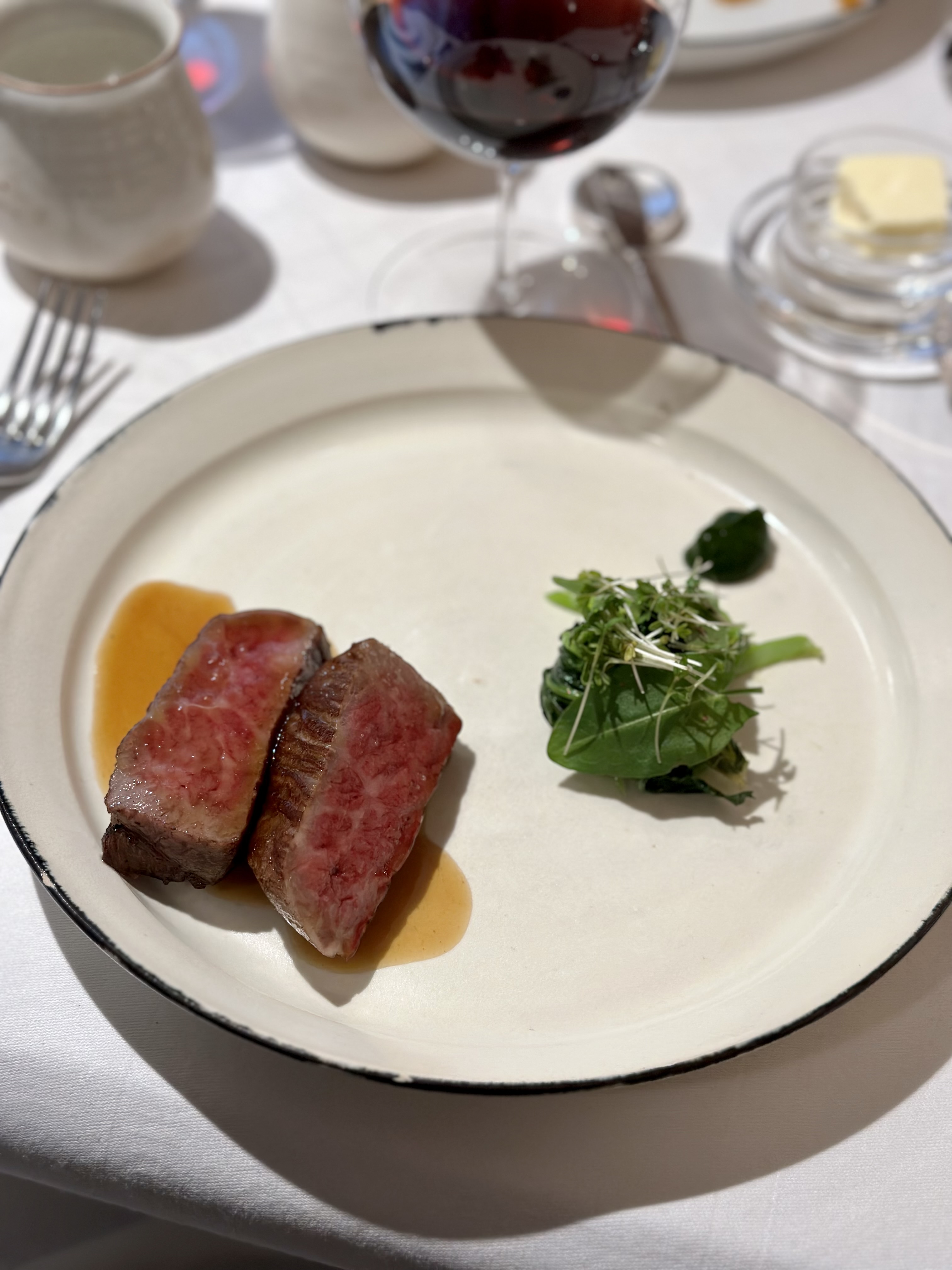 Excellent adresse Un service irréprochable, une table dressée au détail et une ambiance très agréable. Le bœuf wagyu est fondant … et le vin excellent! L’expérience gustative est au rdv, bravo!