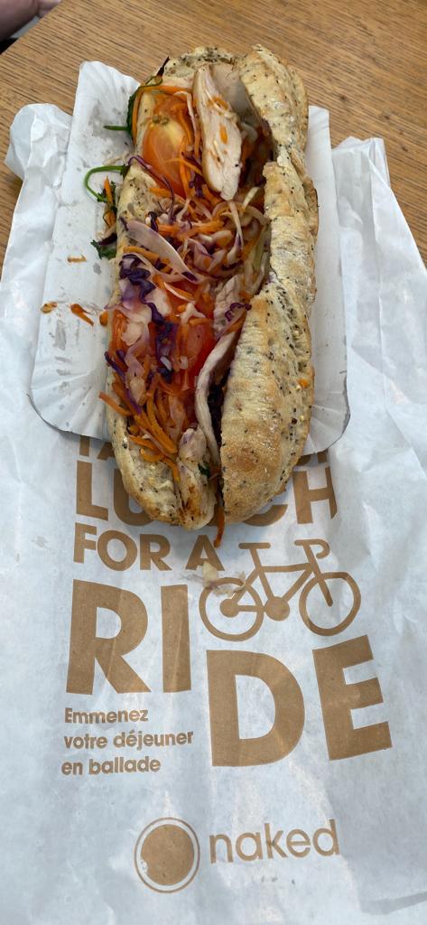 Sandwich chichen Ban mi que de nom. 2% de poulet, 18% de salade et 80% de pain. ARNAQUE! Fuillez!!!!