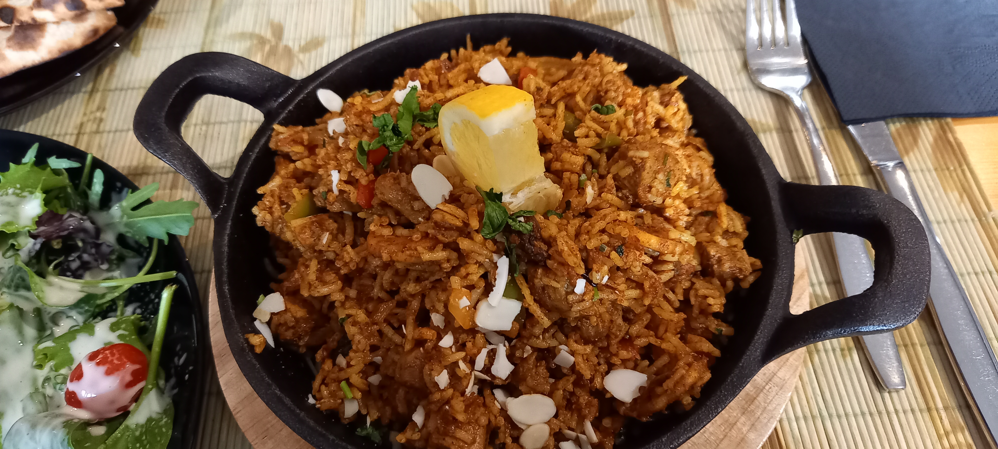 Grand dommage, le four pour cuire les naans était en panne. Toutefois, les deux serveuses l'indiquaient dès l'entrée au restaurant. Les portions sont généreuses. J'ai eu du mal à manger le kulfi, pas pratique en bâton et très gelé. Riz biryani bien relevé (à la demande) servi avec délicieuse petite sauce.