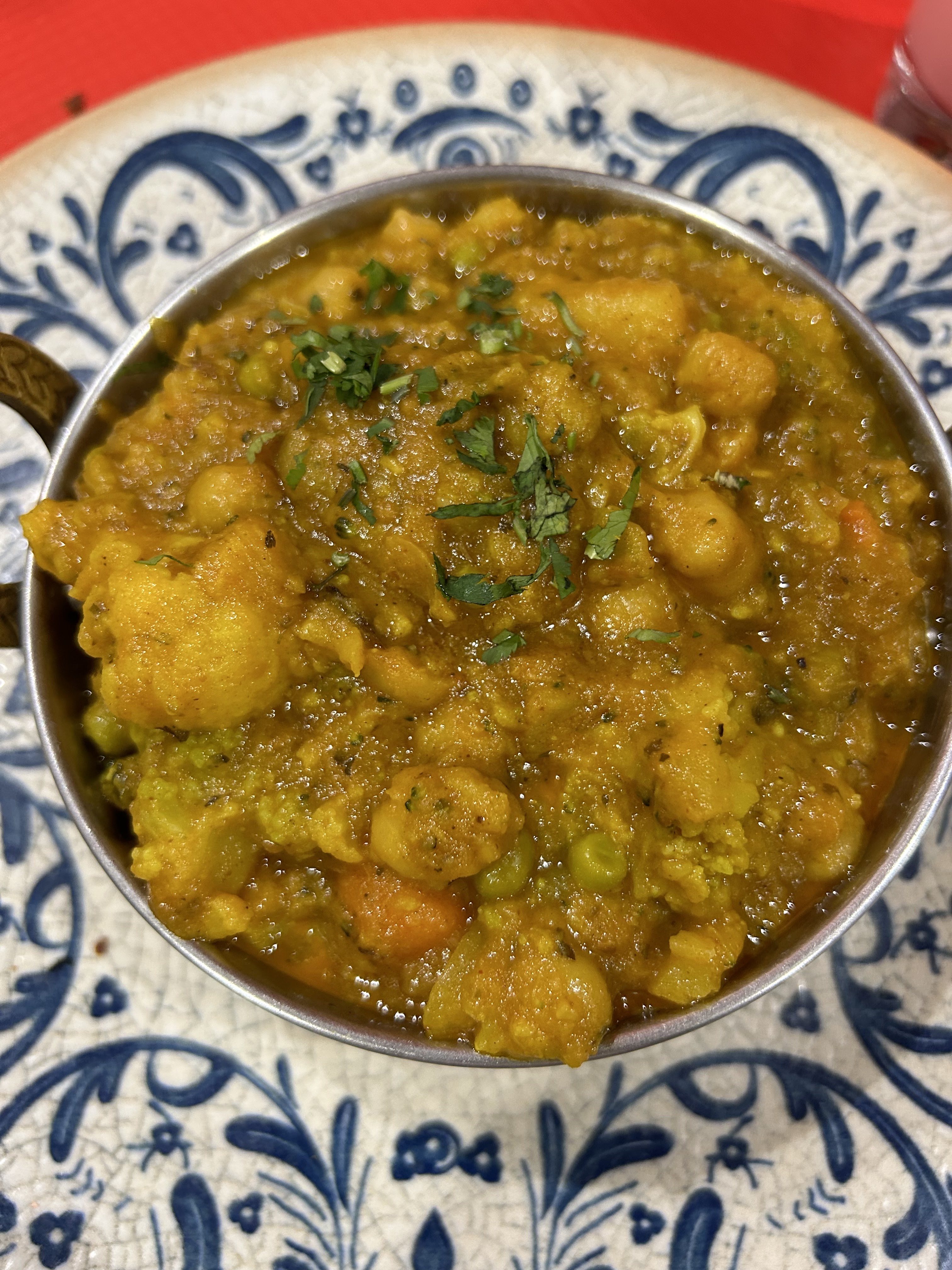Pour ceux qui connaissent la cuisine indienne n y allez pas vous serez déçus .service ultra rapide moins de 5 mn d attente malgré la commande d un apéritif .plats à la sauce douteuse ne respectant pas les recettes traditionnelles indiennes ex du poulet tika massala qui n était en fait qu une sauce à la tomate .copieux au niveau du riz uniquement .le mix pakura ( assortiments de beignets ) servi sans les sauces ...et début d indigestion .