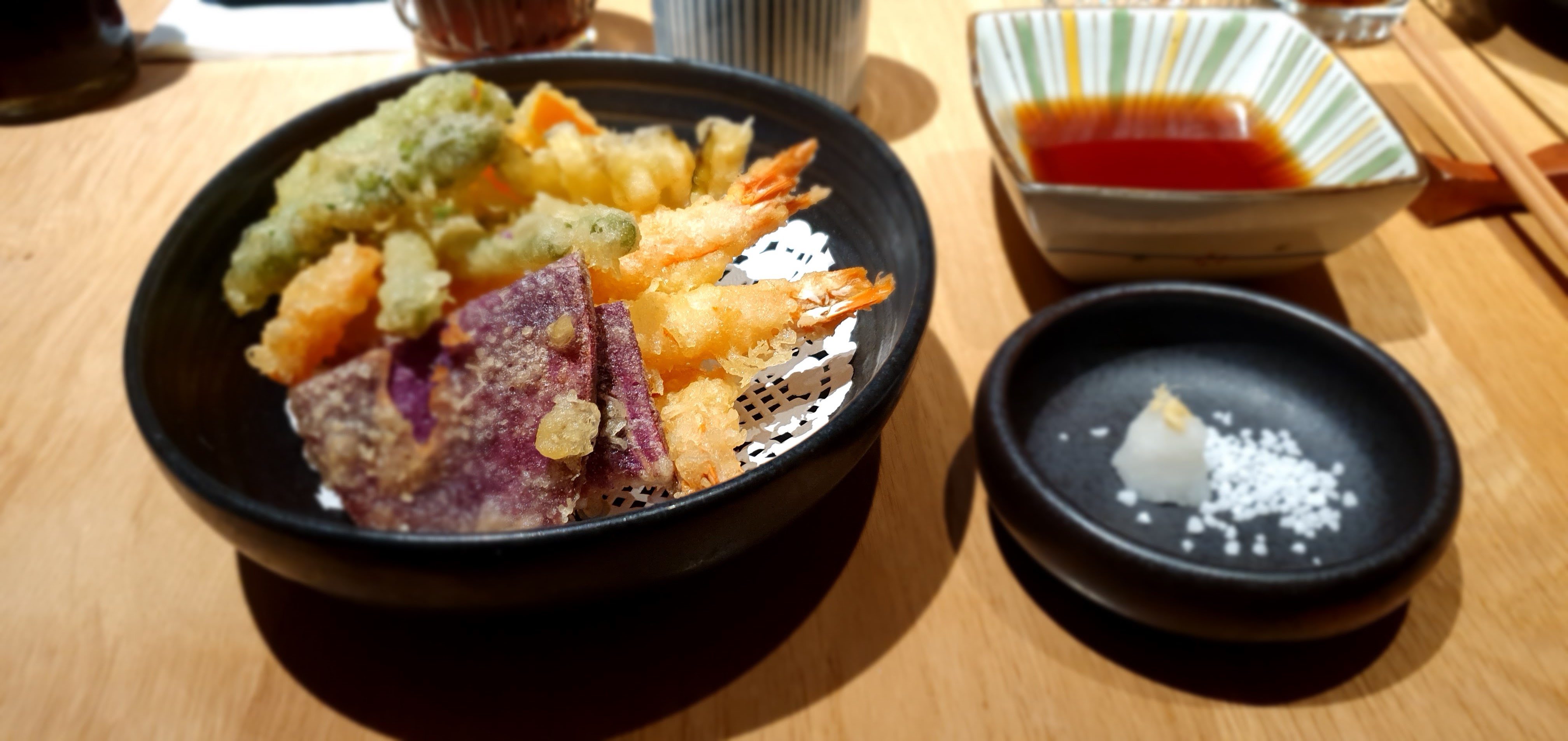 Nous avons déjeuné pour deux, avec les menus sashimi et tempura. Les entrées incluses étaient bonnes ainsi que le deuxième plat.