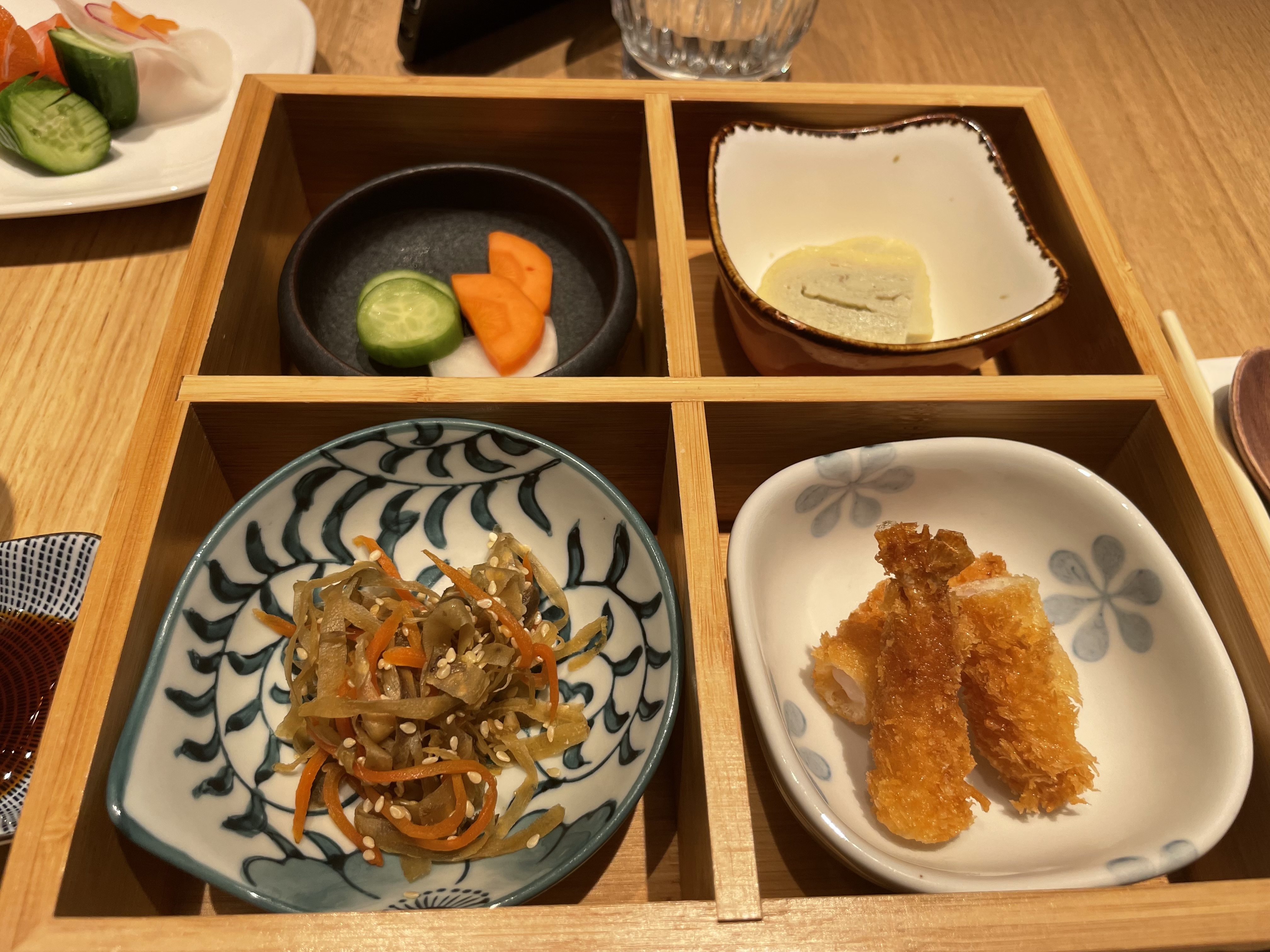 Je suis revenu pour essayer d'autres menus et c'était encore satisfaisant. Véritable endroit japonais authentique comme ils prétendent l'être. Une variété de poissons frais sur de jolis petits bols très copieux. Leurs sushis étaient également excellents. Les membres du personnel adorables étaient la cerise sur le gâteau !