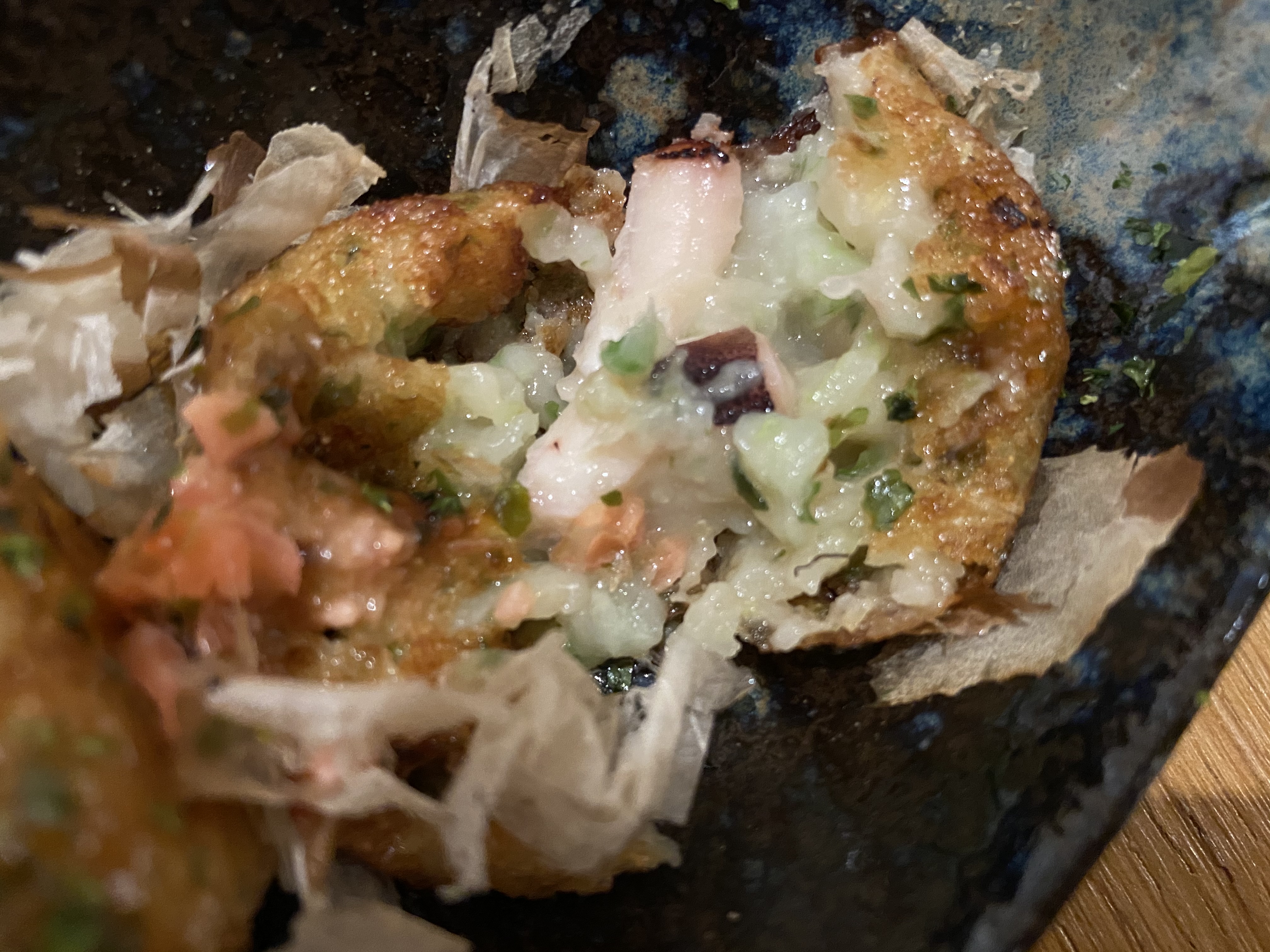 Les Takoyaki sont bons, la salade de poulpe n’est pas mauvaise, mais un peu déçue du karaage. Le gâteau au chocolat est très bon et bien crémeux, et la tarte yuzu également.