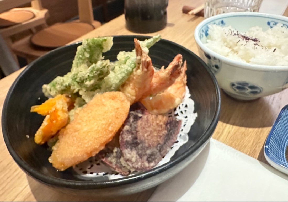 La nourriture était très fraîche et savoureuse. Nous avons eu un repas de style dégustation avec de la tempura, des légumes frais et du poisson. Étonnamment, le poisson blanc était le plus savoureux. C'était vraiment dommage que ce soit si calme un samedi soir !! Beau changement pour nous, nous aimons Paris.xx