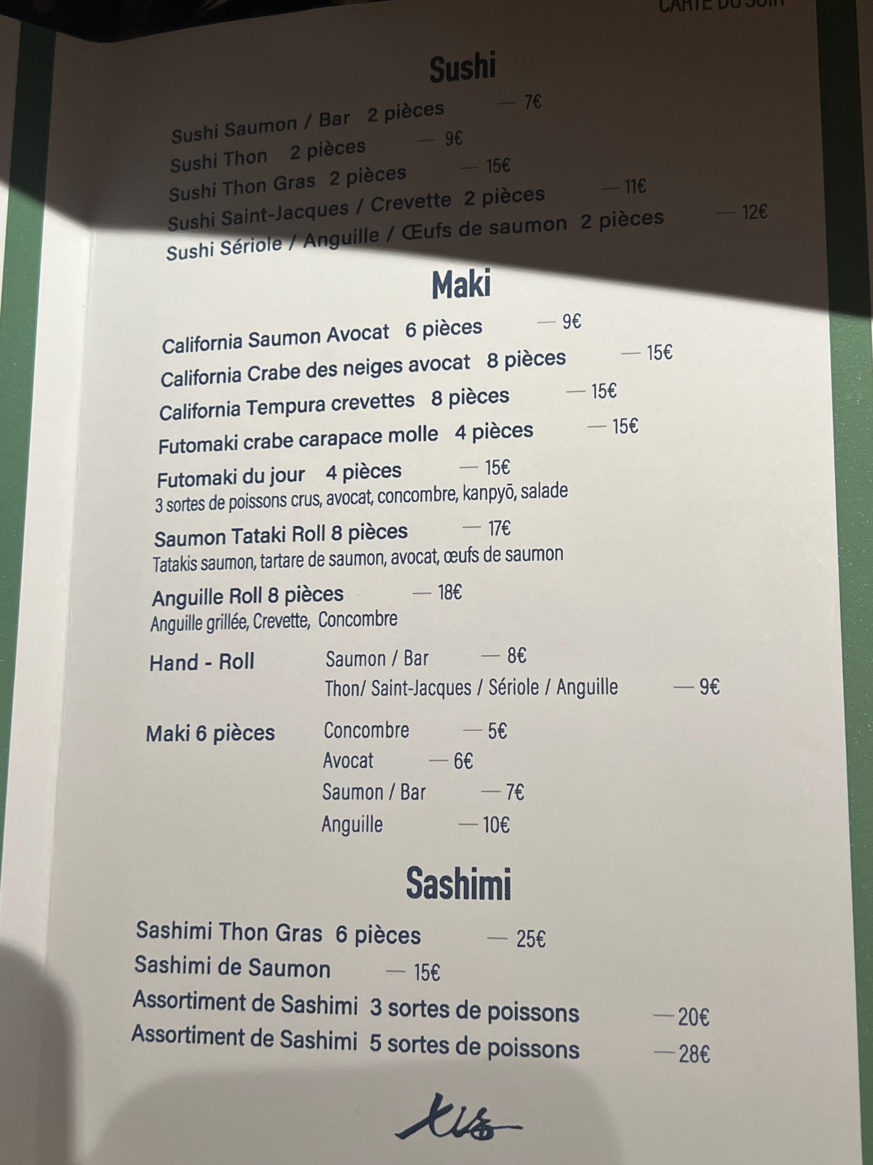On y a dîner en couple, c’était vraiment délicieux et des sashimi & sushi raffiné. Je recommande pour tout fan de sushis qui souhaite monter un peu gamme pour une bonne soirée ☺️