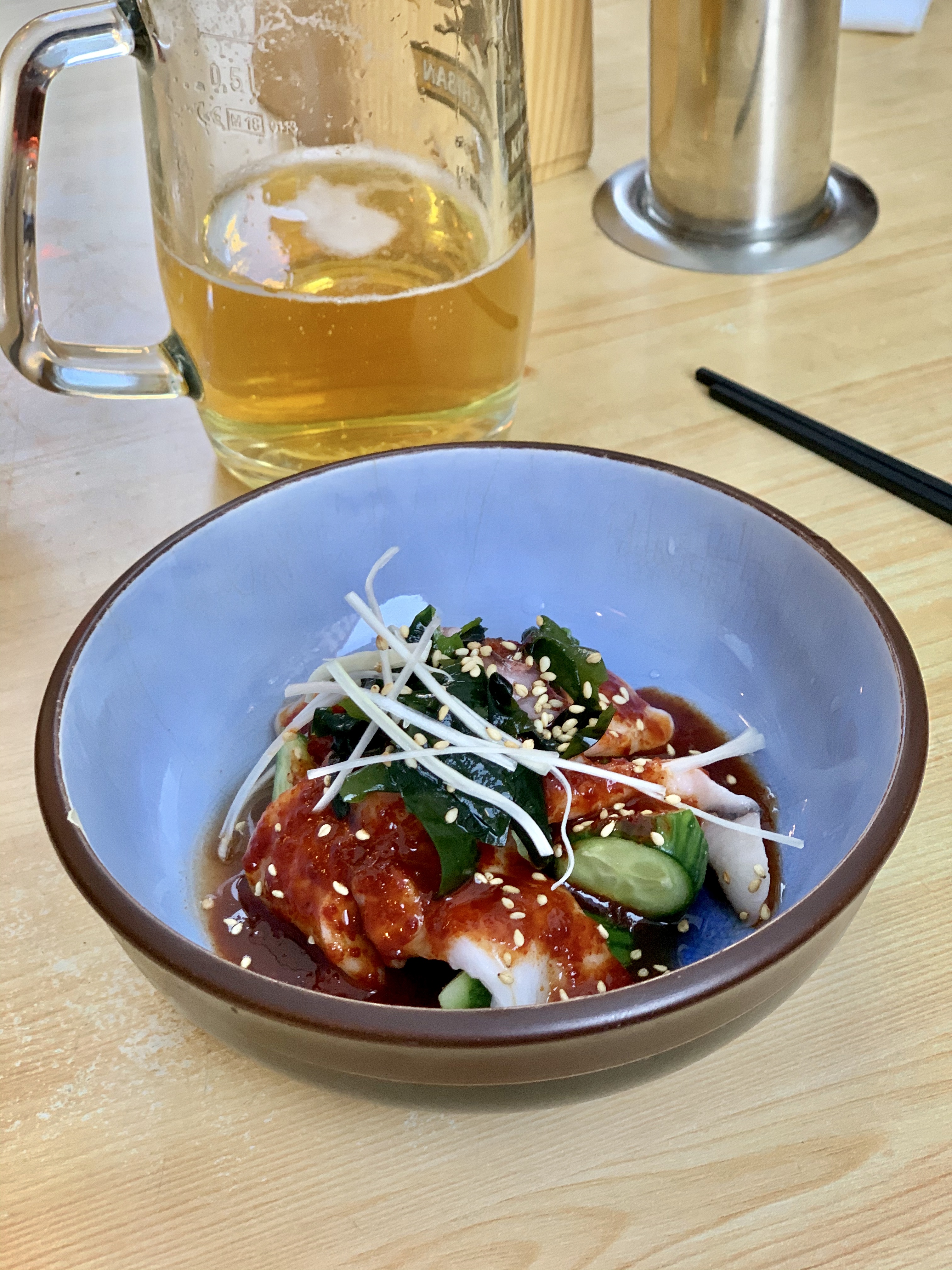 Naniwa-Ya (浪花-Ya), ce restaurant japonais « Tapas » a rouvert ses portes après travaux 😉 La rénovation est réussi 👏 Le décor de style izakaya (居酒屋) fait son effet avec la vaisselle japonaise et les bouteilles de saké qui ornent le comptoir et les étagères. J’ai pris un Tempura Udon… car ils n’avaient plus de soba (nouilles au sarrasin) 😭. Dommage quand il fait 30°C à l’extérieur 🥵. Le udon n’était pas mauvais mais il n’arrive pas à la cheville d’un confrère spécialiste comme Sanukiya ou Kunitoraya. Par contre le kimchi était tout mou 😣. Il était manifestement trop vieux. Le rapport qualité / prix reste toutefois raisonnable 😊