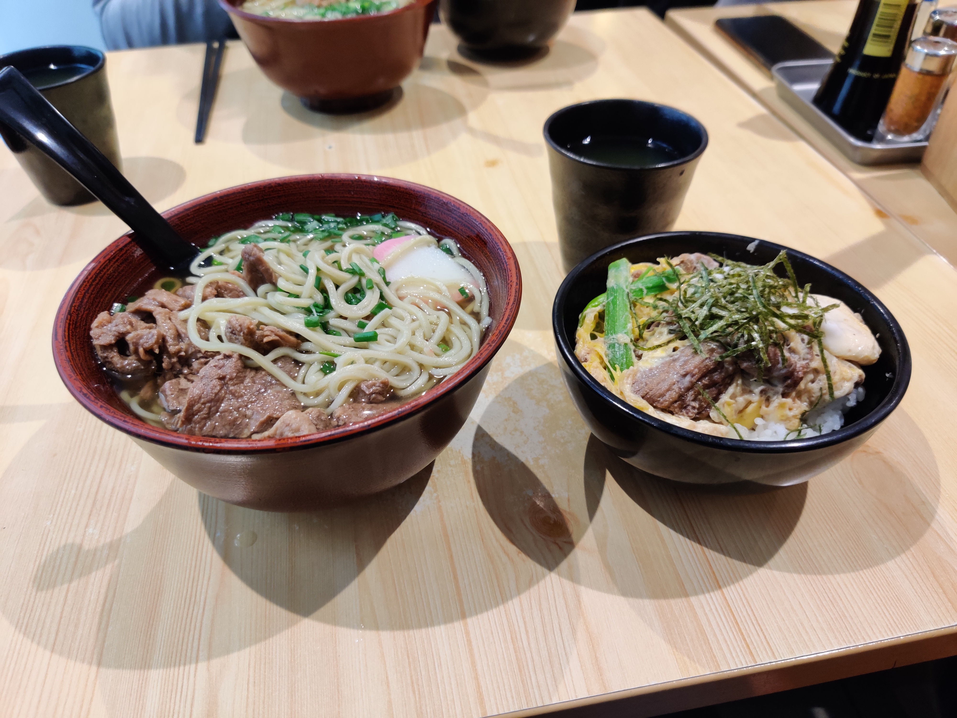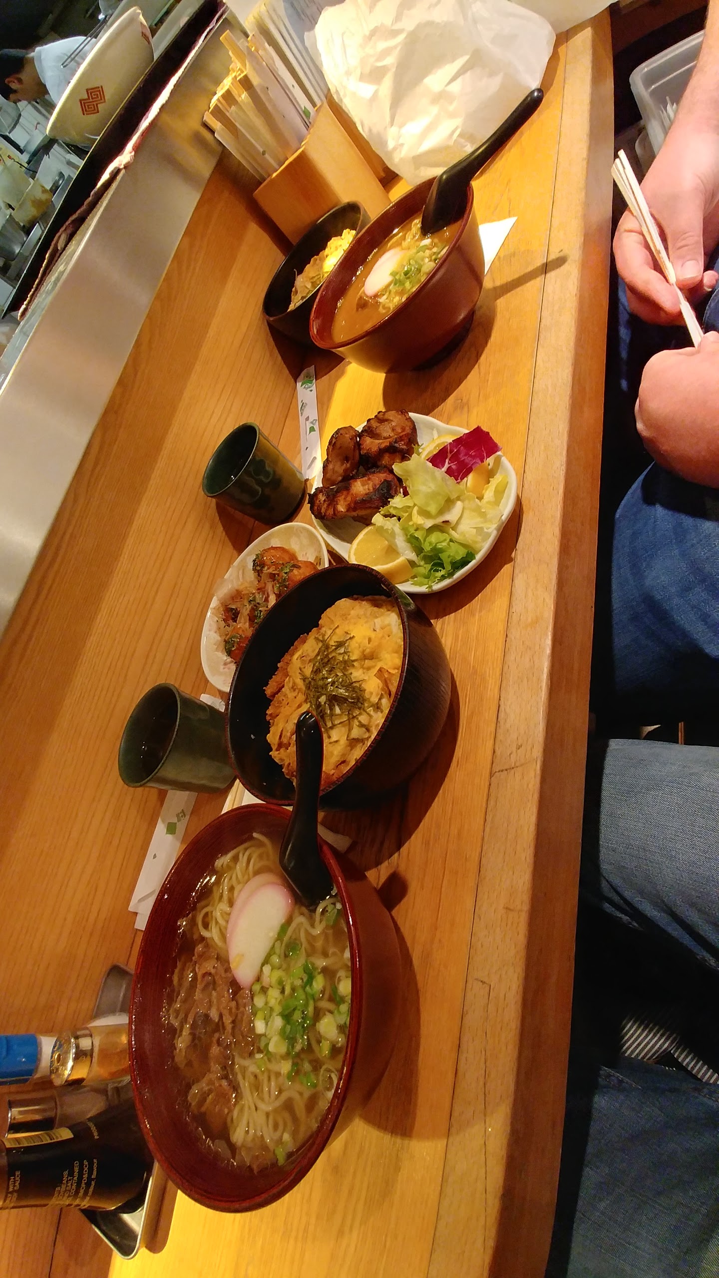 Nourriture correcte et bon marché. Bon Tendon, pas beaucoup de viande dans le ramen, oeuf un peu cuit. Porc du donburi un peu ferme. Accueil sympa.