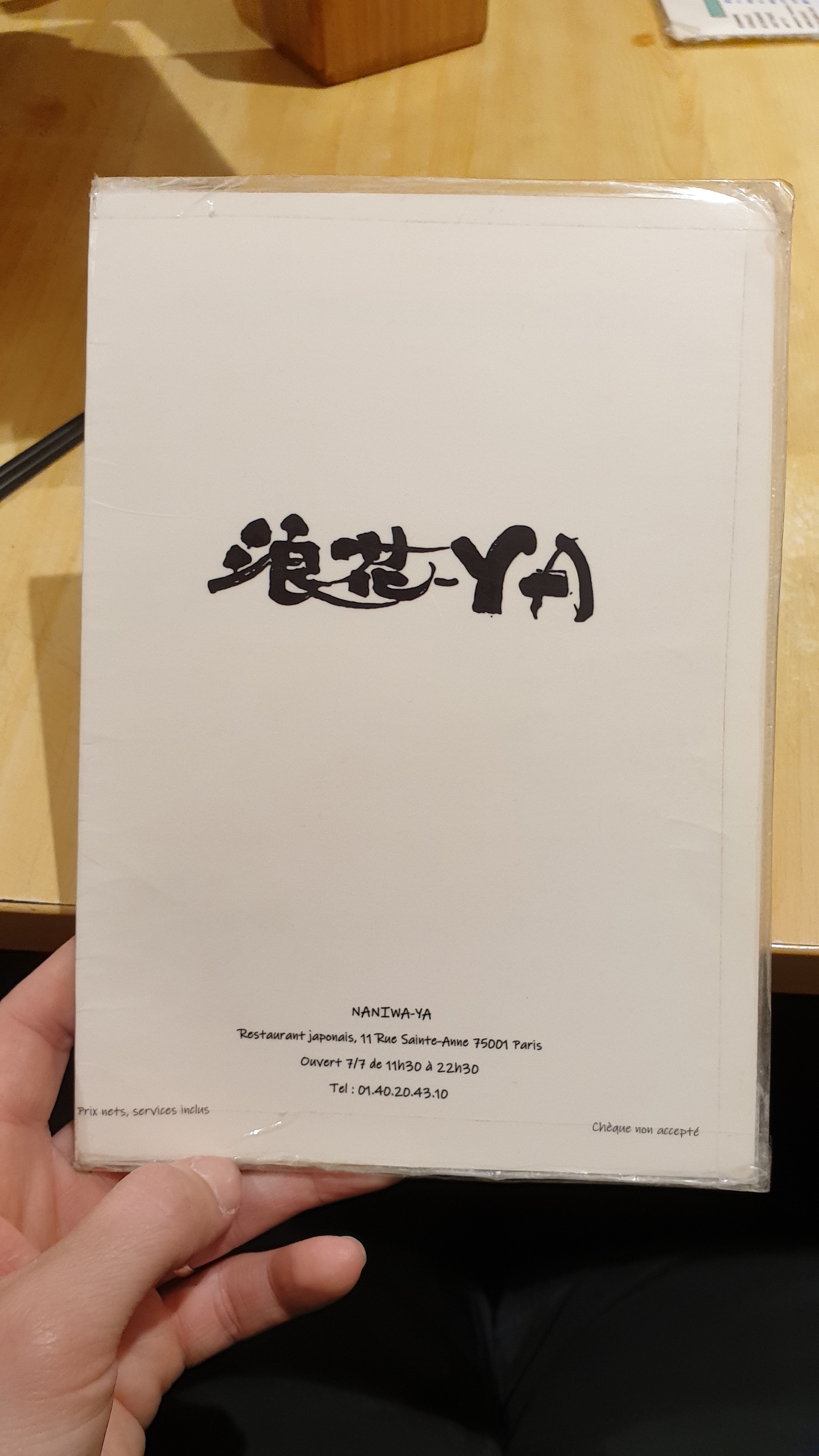 Je viens chez Naniwa-Ya depuis des années. Le lieu est joli, intimiste, le staff est super gentil et la cuisine délicieuse. Je recommande vivement le Curry Udon, le plat que je prends à chaque fois.