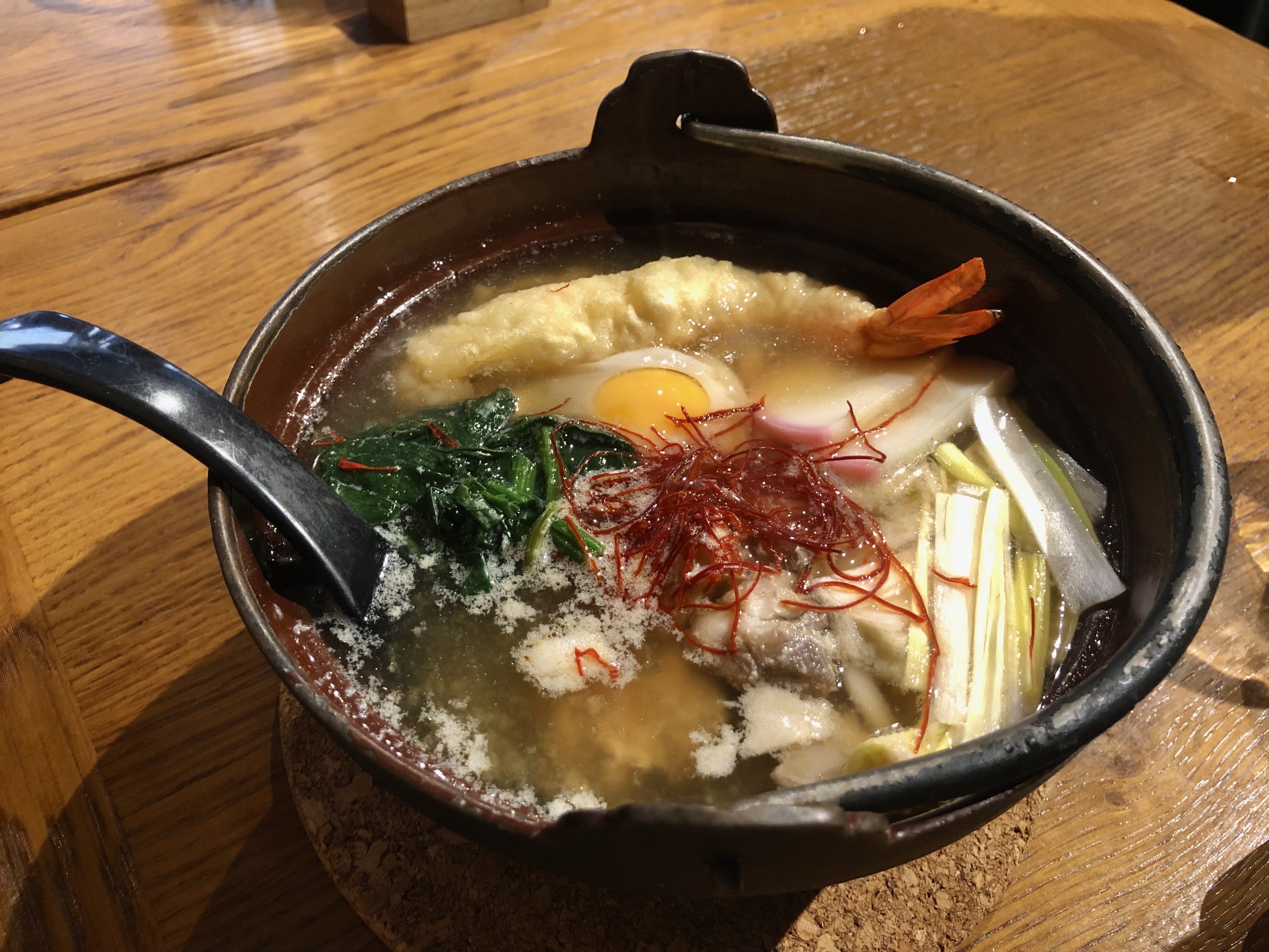 Comme toujours, un régal ! Cette fois c'était un tsumiki udon 🥚 que je ne peux que recommander (mélanger l'oeuf au bouillon et le tour est joué !). L'oyakodon (🐔/🥚) m'a déçu, car trop simple (le poulet n'est pas pané par exemple, ça manquait de goût) par rapport au reste de la carte.