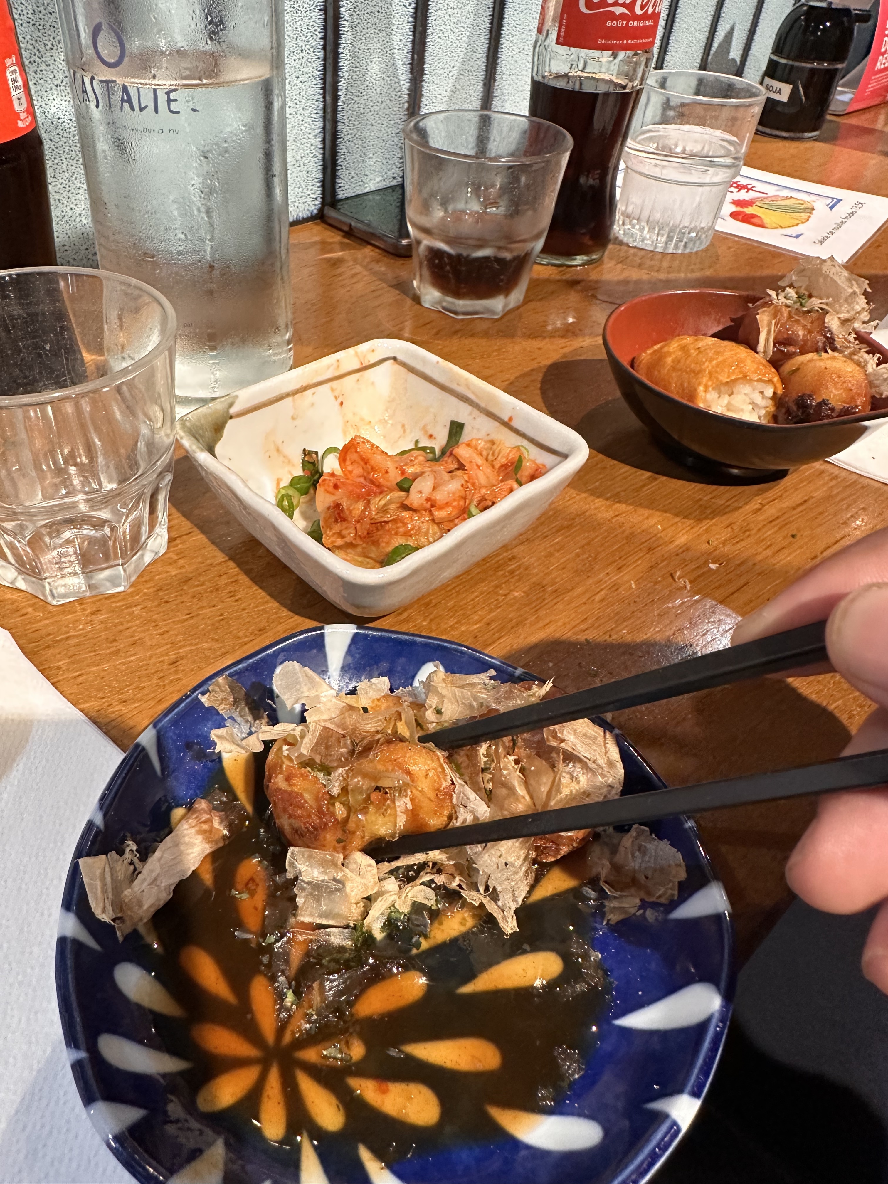 Nous avons partagez un délicieux repas. Les Ramen étaient vraiment bon. Juste les Takoyaki qui manquaient de poulpe à l’intérieur. Mais globalement nous nous sommes régalé.