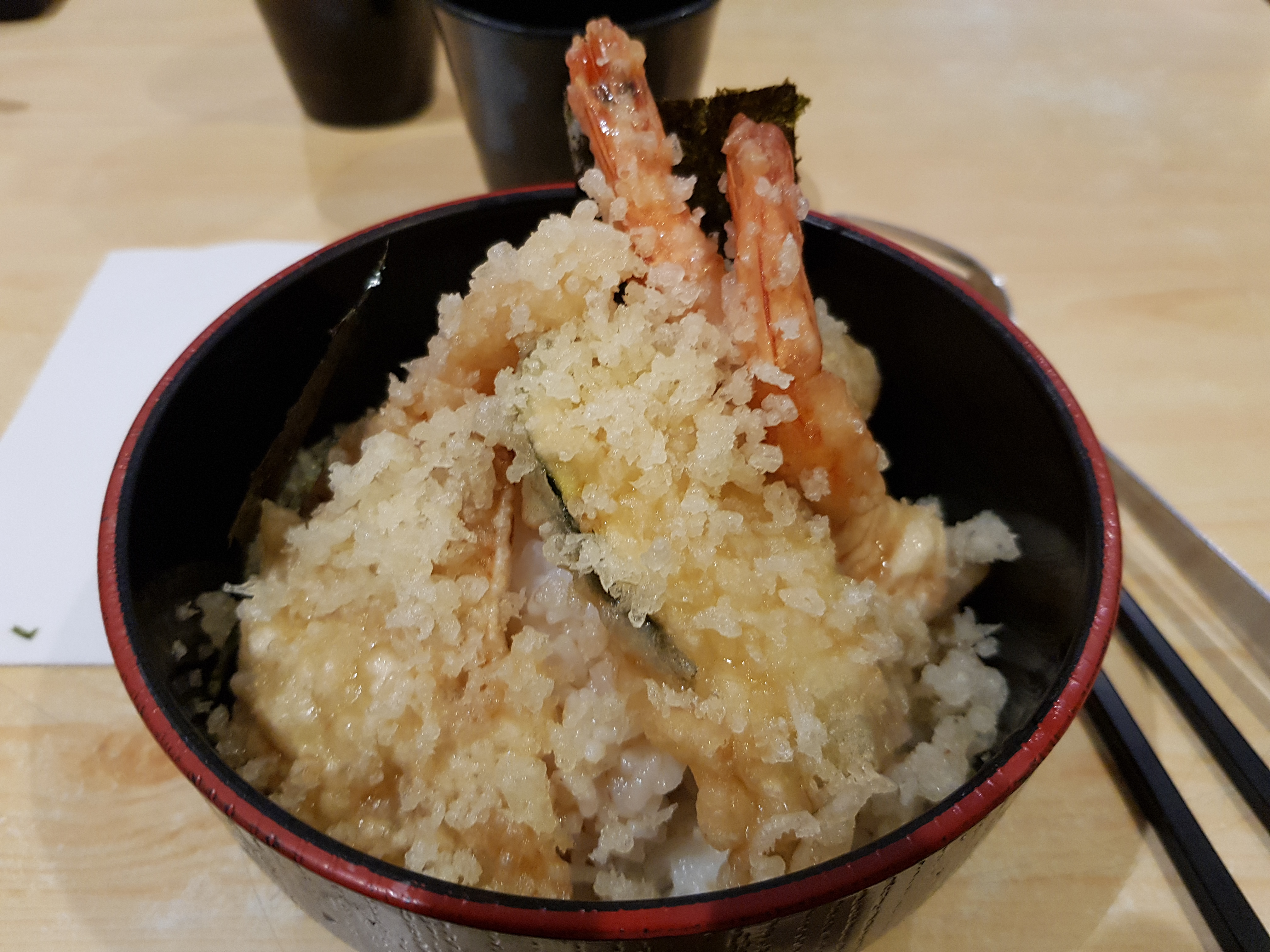 J'ai pris un donburi tendon sur le menu midi, avec une soupe miso et une salade. J'ai bien aimé la soupe miso et le donburi. Dans le donburi il ya deux tempura de crevettes, et puis des beignets de légumes: carotte, poivron, concombre, pomme de terre si je me souviens bien. Et pour 15 euros je crois. Je recommande. L'accueil est très bien aussi, comme la plupart des restaurants du quartier.