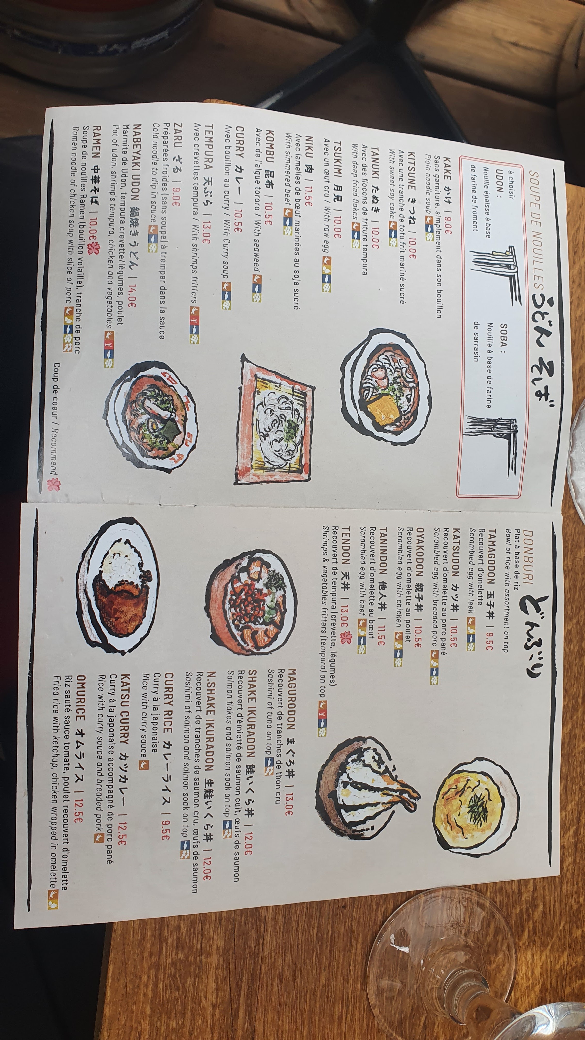 Une carte bien fournie avec différentes spécialité japonaise, il y'en à vraiment pour tout les goûts, de quoi contenter tout le monde. Et surtout.... Un des uniques lieux où on trouve de l'omurice 😍 je recommande ! (et les portions sont monstrueuses Haha)