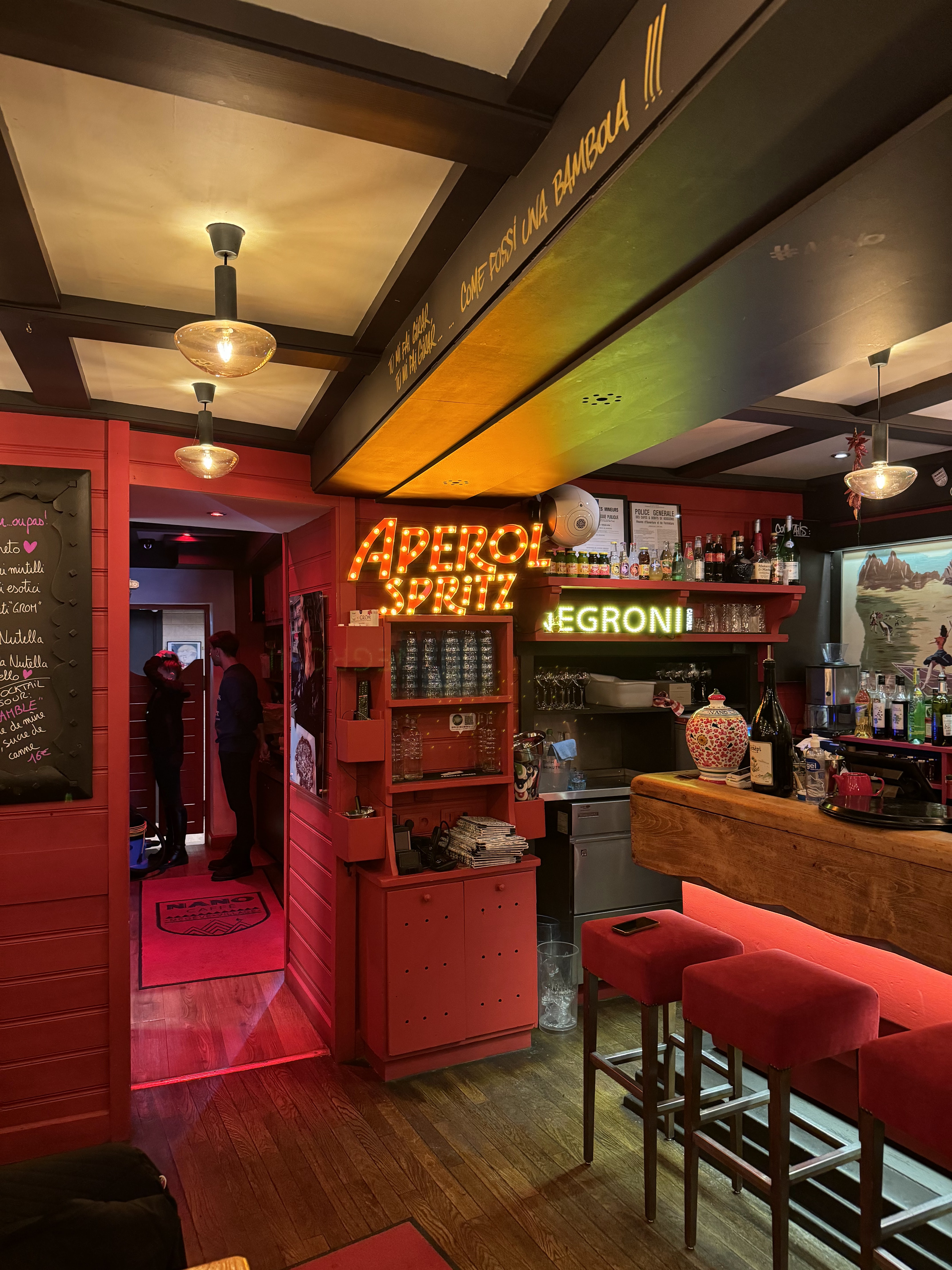 Je suis vraiment déçu de mon expérience au Nano Caffè, surtout après qu'il m'ait été recommandé et que mes attentes étaient élevées. Nous avions commandé une planche à partager comprenant des charcuteries, des arancini nature et à la truffe, des calamars frits et de la burrata au pesto. À notre grande déception, la planche est arrivée sans les calamars et avec seulement un arancino. Après avoir signalé le problème à l'une des serveuses, elle nous a informés qu'ils étaient en rupture de calamars, bien que cela ne nous ait pas été précisé au moment de la commande. J'ai alors demandé si nous pouvions recevoir d'autres arancini. Après une attente de 10 minutes, les arancini manquants sont arrivés, mais malheureusement, ils étaient uniquement à la tomate, aucun à la truffe. La planche, à plus de 30€, semblait un peu chère pour la moitié des éléments annoncés. Cependant, je tiens à souligner que le jambon à la truffe et la mortadelle étaient délicieux. Initialement, nous avions l'intention de commander des pizzas et des pâtes, mais en observant les plaintes des tables autour de nous concernant des erreurs dans leurs commandes de pizzas, nous avons changé d'avis. Les cocktails que nous avons pris étaient bons, mais sans plus. La salle, bien que petite, était assez cosy. Malgré cette déception, j'aimerais donner une seconde chance au Nano Caffè, pensant que le personnel ne s'attendait peut-être pas à une affluence importante un dimanche soir. J'espère sincèrement qu'une prochaine visite correspondra davantage à mes attentes et à la réputation que le restaurant a sur Megève.