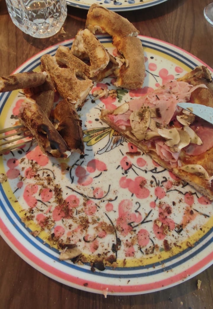 Pot de rosé en apéro avec buffala et jambon cru à partager, bouteille de Côte du Rhône famille Perrin « Réserve » avec Pizza Calzone excellente… si vous sortez de cet établissement avec la faim et la soif c’est juste parce que vous ne savez pas vivre…! Et merci également pour le service sympathique !