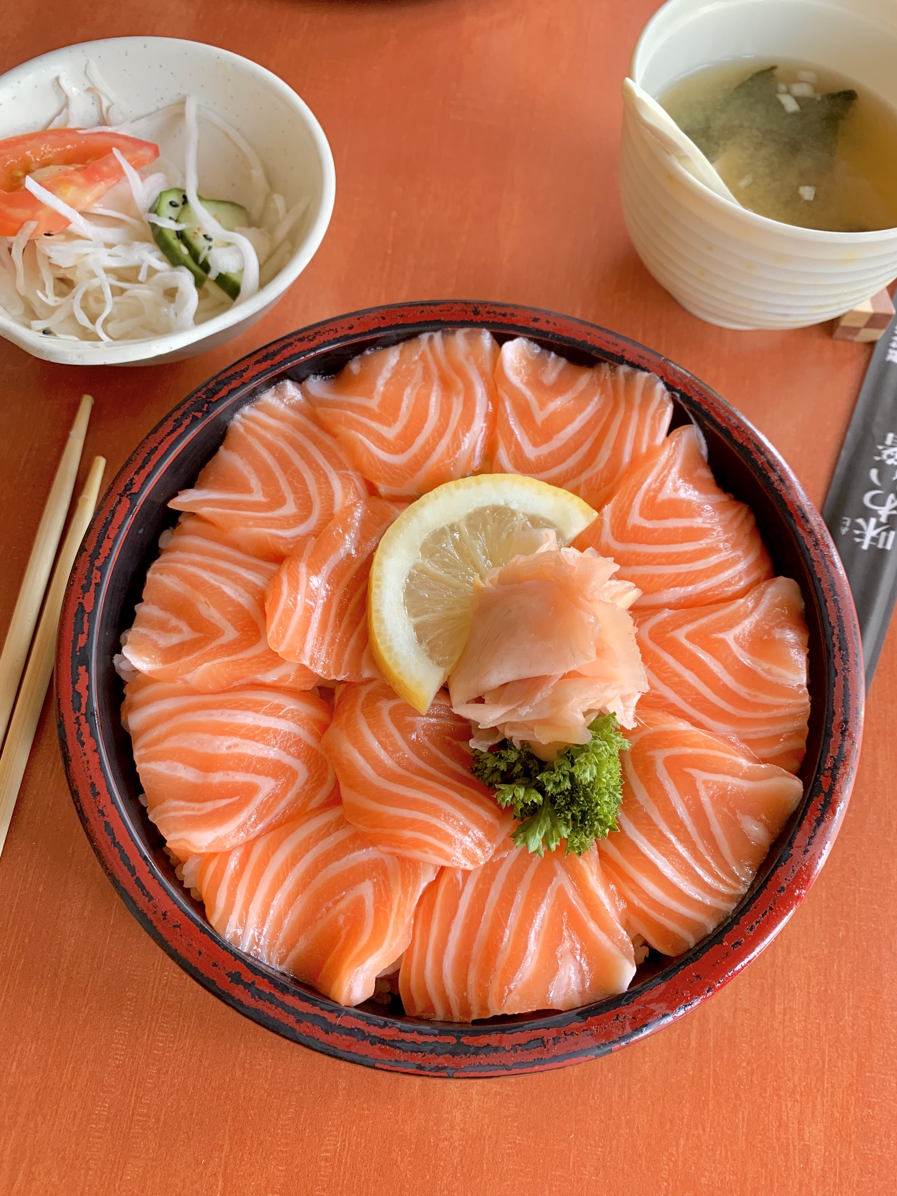 Commande à emporter. Serive rapide, cependant j'ai pris un chirashi qui a été servis dans une barquette ?? J'ai toujours eu des bols de chirashi, donc dans une barquette très peu de quantité... En plus la quantité de salade de choux est vraiment maigre, même pas la moitié du récipient... Je reste sur ma faim surtout pour le prix !!! Je ne recommanderais plus dans ce restaurant !!