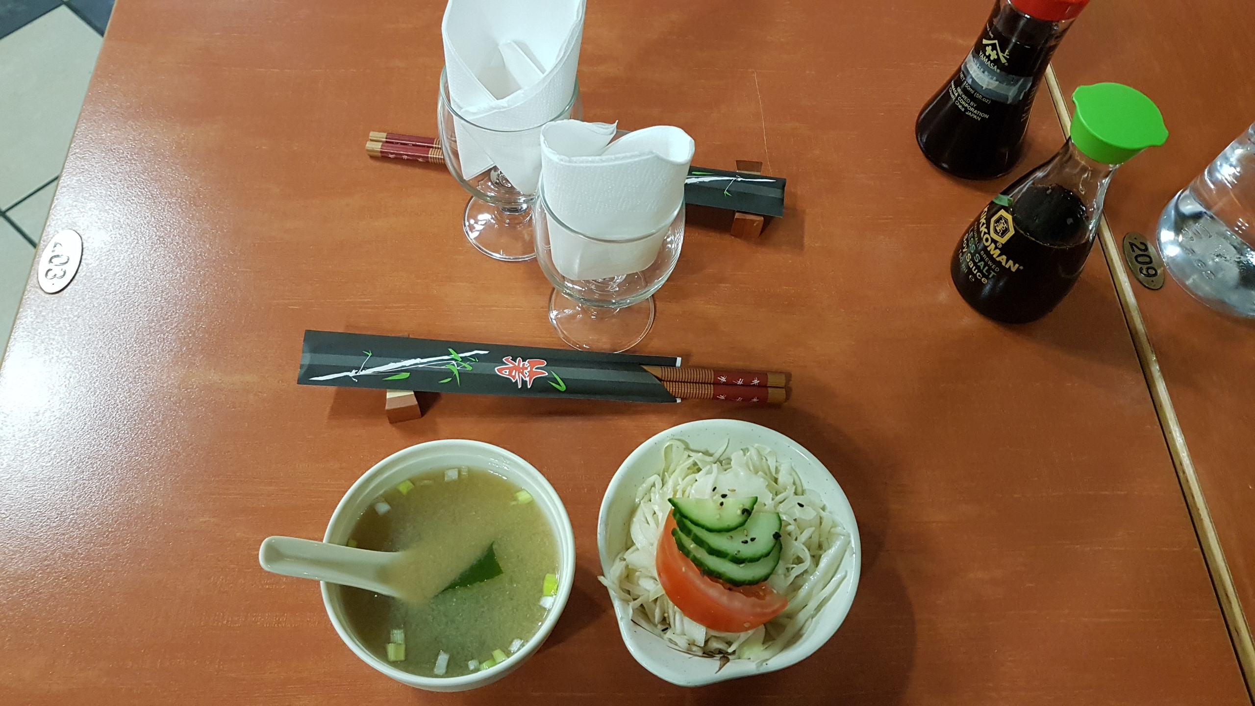 Crudités petite quantité, miso coupée à l'eau et pas de goût, brochettes ca va, heureusement. Prix correct mais un peu déçue !
